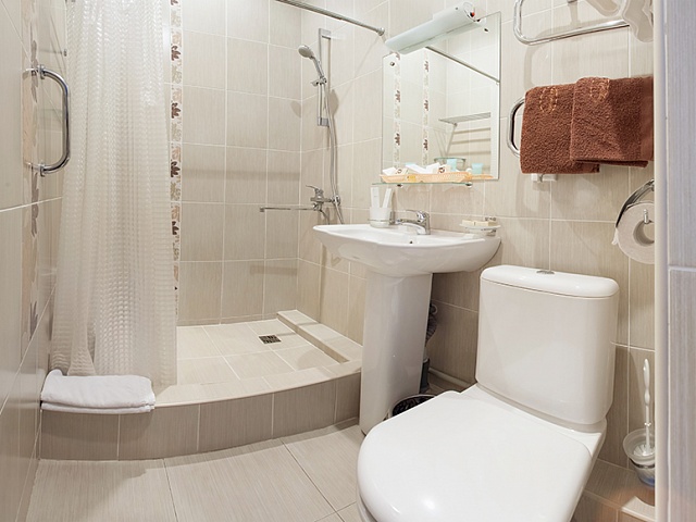 кондиционер, фен, балкон, сейф, телефон, санузел с душевой кабиной, ванные принадлежности, тапочки, двуспальная кровать, шкаф, односпальная кровать, шкаф-купе, утюг с гладильной доской, диван, электрочайник, полутороспальная кровать, два телевизора