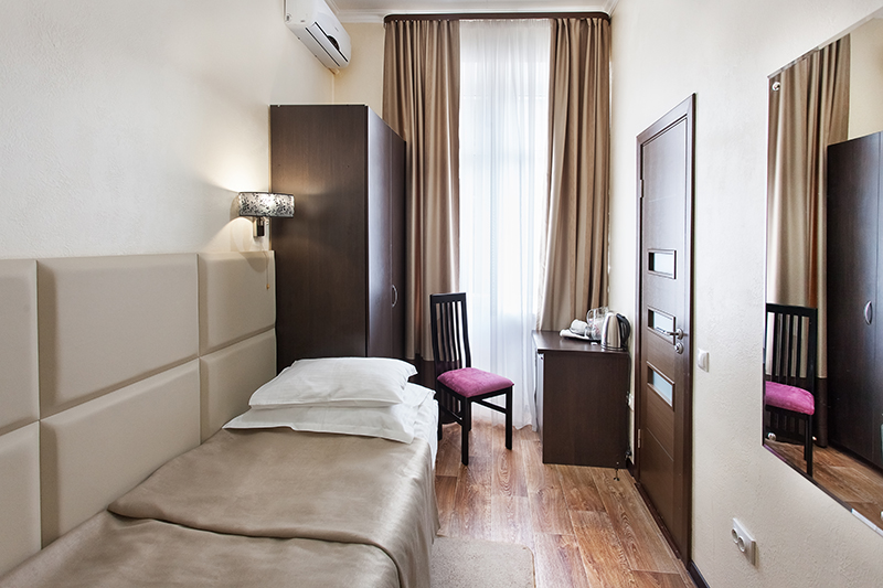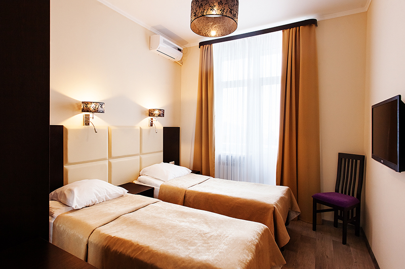 холодильник, телевизор, фен, балкон, санузел с душевой кабиной, ванные принадлежности, прикроватные тумбочки, односпальная кровать: 2 шт, шкаф-купе