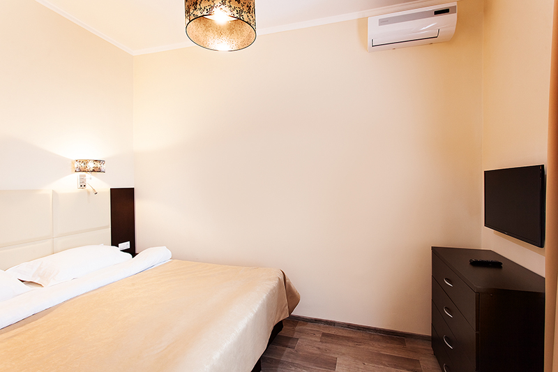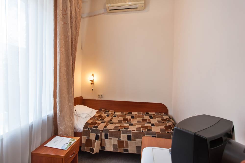 холодильник, кондиционер, телевизор, фен, балкон, санузел с душевой кабиной, ванные принадлежности, односпальная кровать
