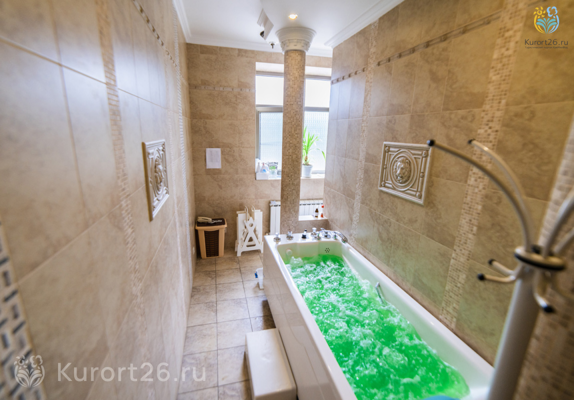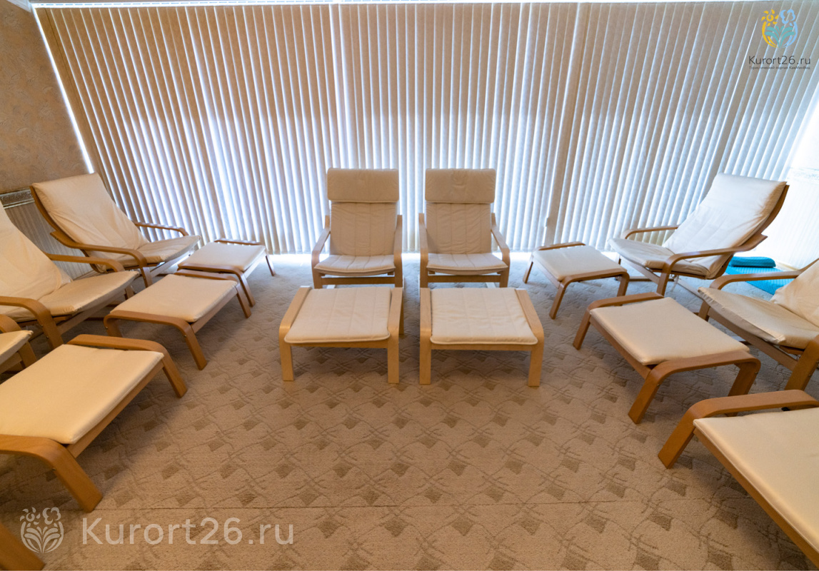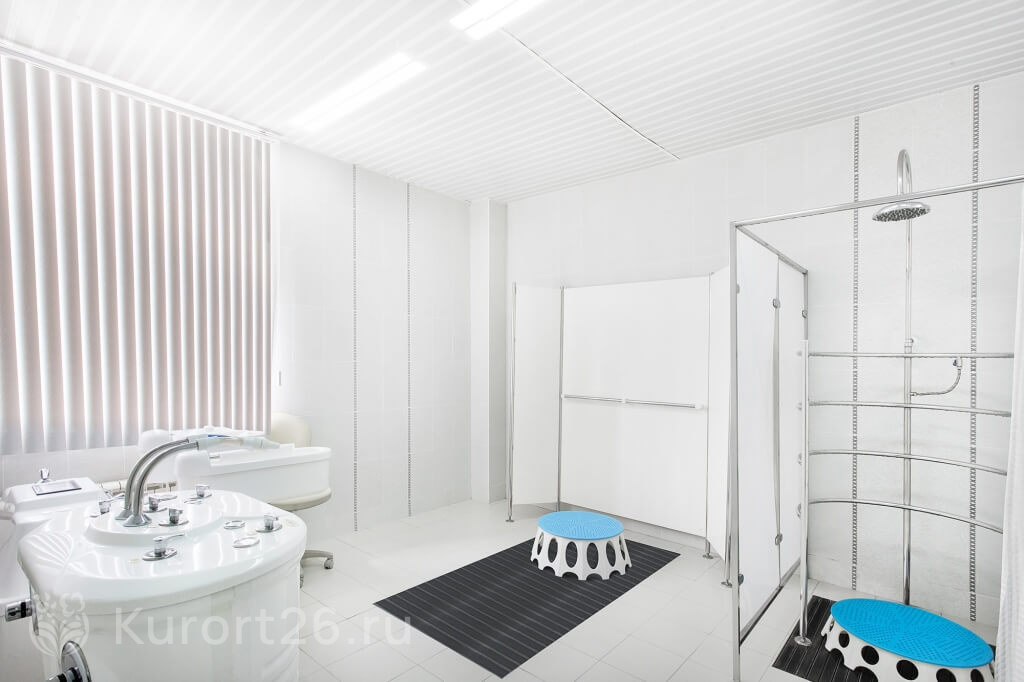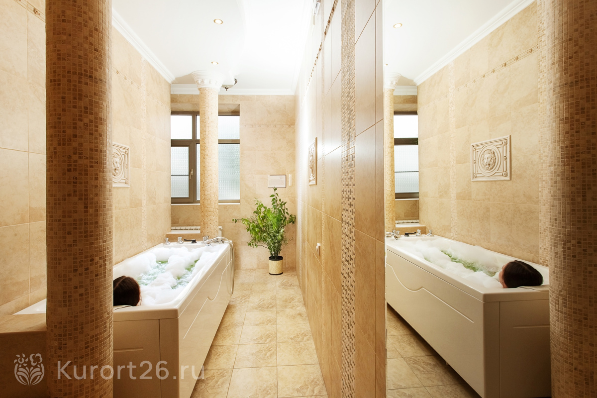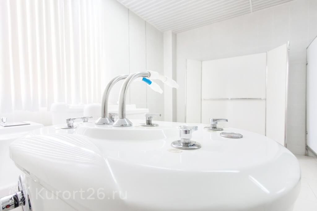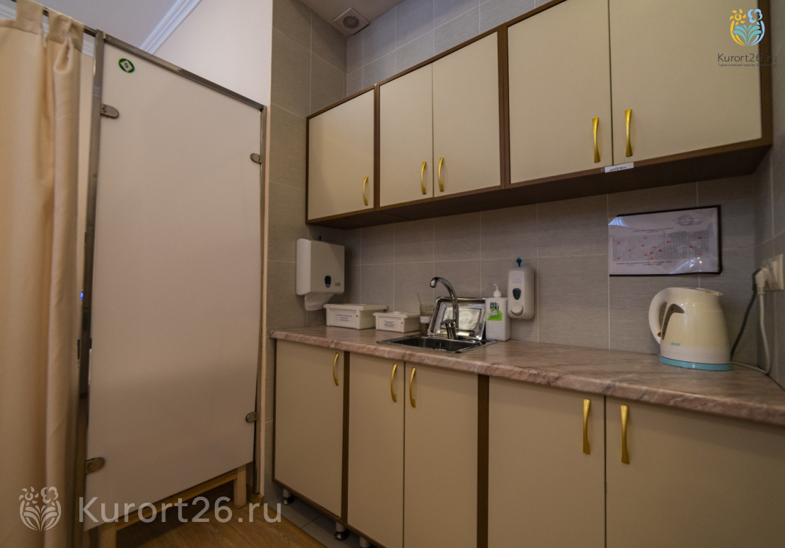 отделения гидропатии (гидромассаж, лечебные души, минеральные и жемчужные ванны), кабинета кишечных орошений, кабинета ингаляций и орошений, карбокситерапии, физиотерапии, озонотерапии, кислородотерапии, детензортерапии, кабинетов аппаратного и классического ручного массажа, зала психотерапии.