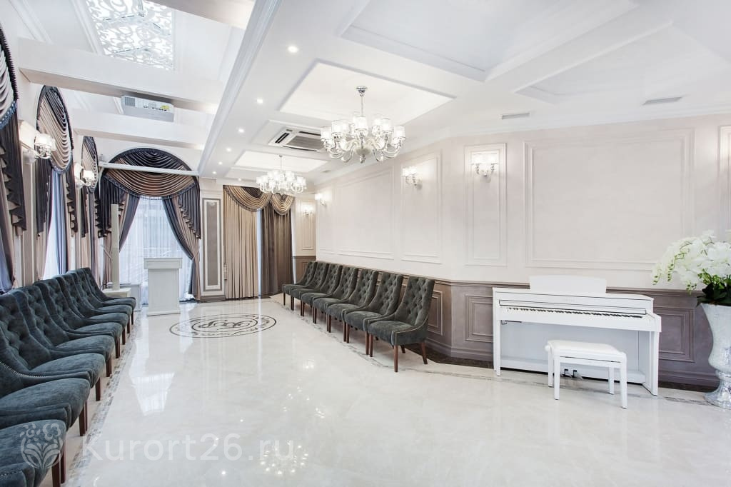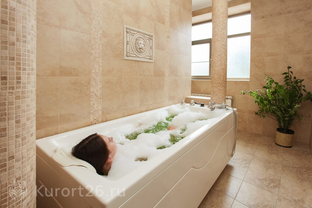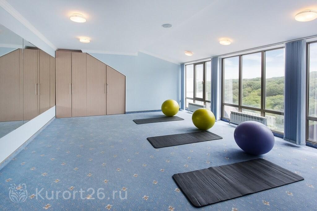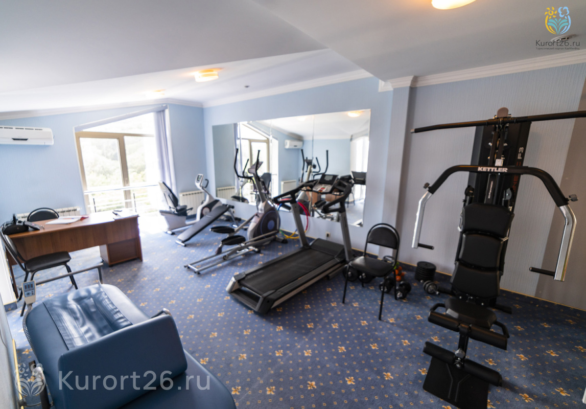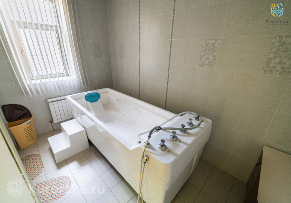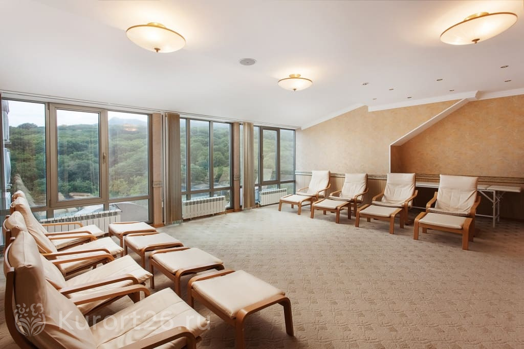 отделения гидропатии (гидромассаж, лечебные души, минеральные и жемчужные ванны), кабинета кишечных орошений, кабинета ингаляций и орошений, карбокситерапии, физиотерапии, озонотерапии, кислородотерапии, детензортерапии, кабинетов аппаратного и классического ручного массажа, зала психотерапии.