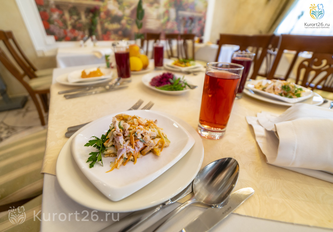 Лечение: Приём минеральной воды, Диетическое питание, Приём кислородного коктейля, Фиточай, Ванны, Лечебные души, Грязевые аппликации, Введение ректальных грязевых тампонов при болезнях толстого кишечника (по показаниям), Массаж ручной или Подводный душ-массаж, Аппаратная физиотерапия, Микроклизмы, Сифонные промывания кишечника (по показаниям), Ингаляции, Орошение дёсен минеральной водой, Сеансы психологической разгрузки, Лечебная физкультура, Плавание в бассейне, Аквааэробика, Занятия в тренажёрном зале, Лечебная ходьба по терренкуру, Естественный солярий 2 часа в день.