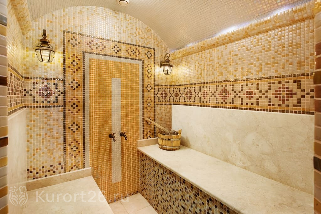 Расслабить мышцы после плавания поможет баня. Санаторий предоставляет на выбор сухой жар финской сауны и влажный пар турецкого хаммама. Парная выводит токсины и улучшает состояние кожи.