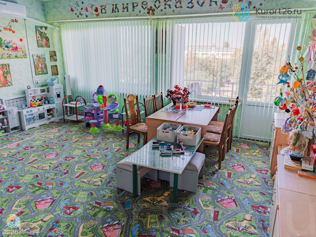 Санаторий принимает на отдых и лечение детей с 4-х лет. Работает детская комната с воспитателем (до 18:00), игровая площадка, проводятся анимационные программы с конкурсами и призами (в вечернее время). Ведёт прием врач-педиатр, есть несколько программ лечения детей разных возрастов. Разработано специальное детское меню.