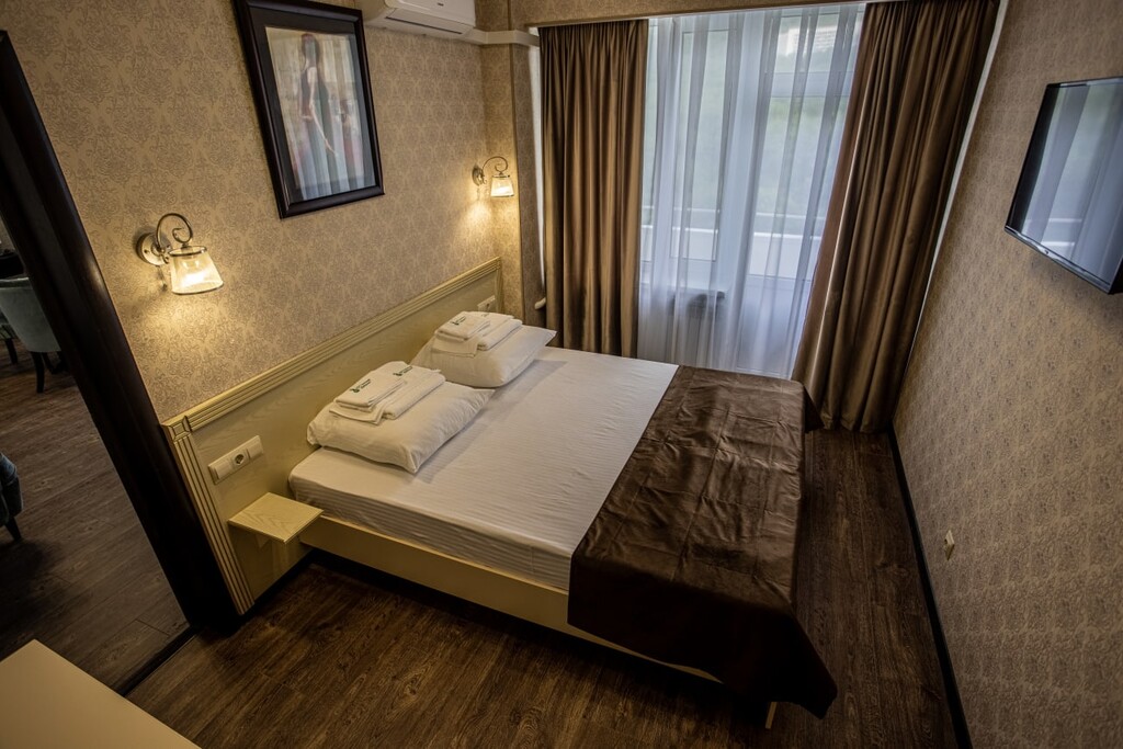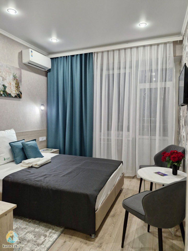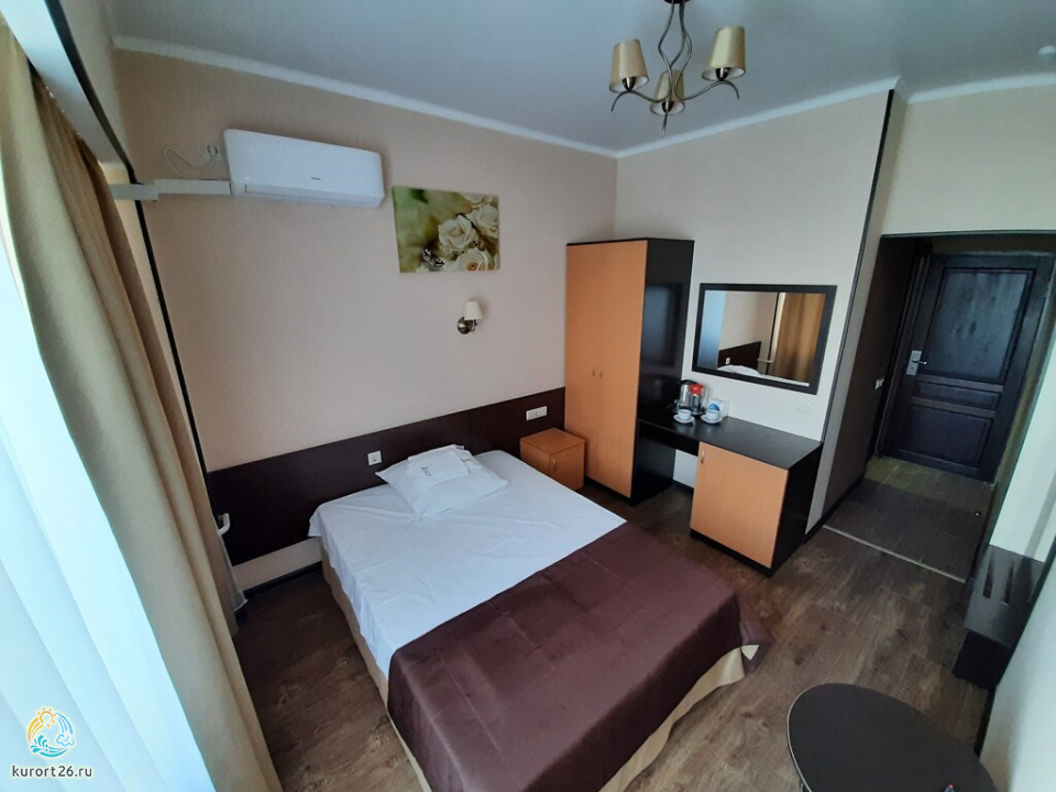холодильник, кондиционер, телевизор, чайник, телефон, интернет в номере, двуспальная кровать, набор мягкой мебели, ванная комната