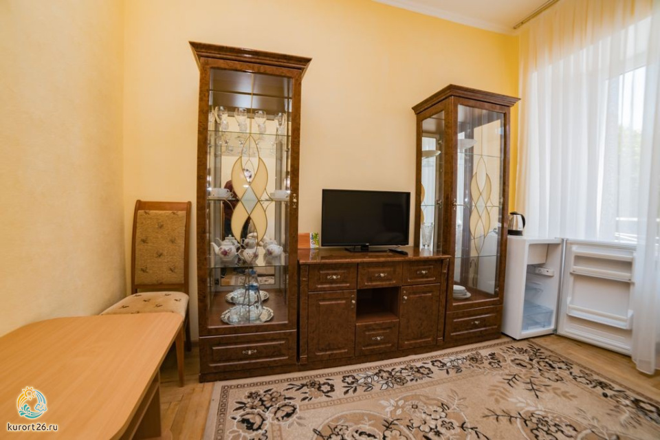 холодильник, кондиционер, телевизор, чайник, телефон, интернет в номере, двуспальная кровать, набор мягкой мебели, ванная комната
