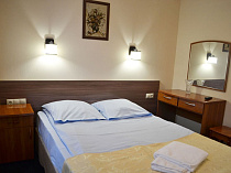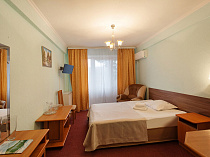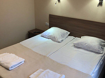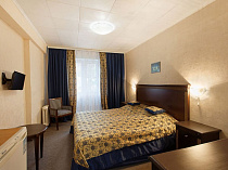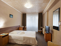 холодильник, телевизор, фен, ванные принадлежности, односпальная кровать, ванная комната, кресло, журнальный столик, набор полотенец