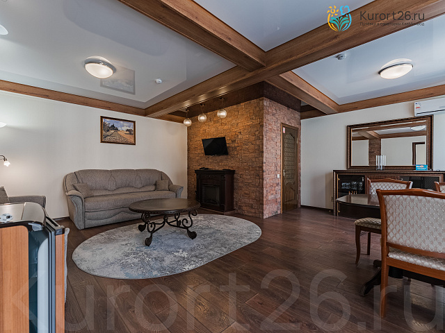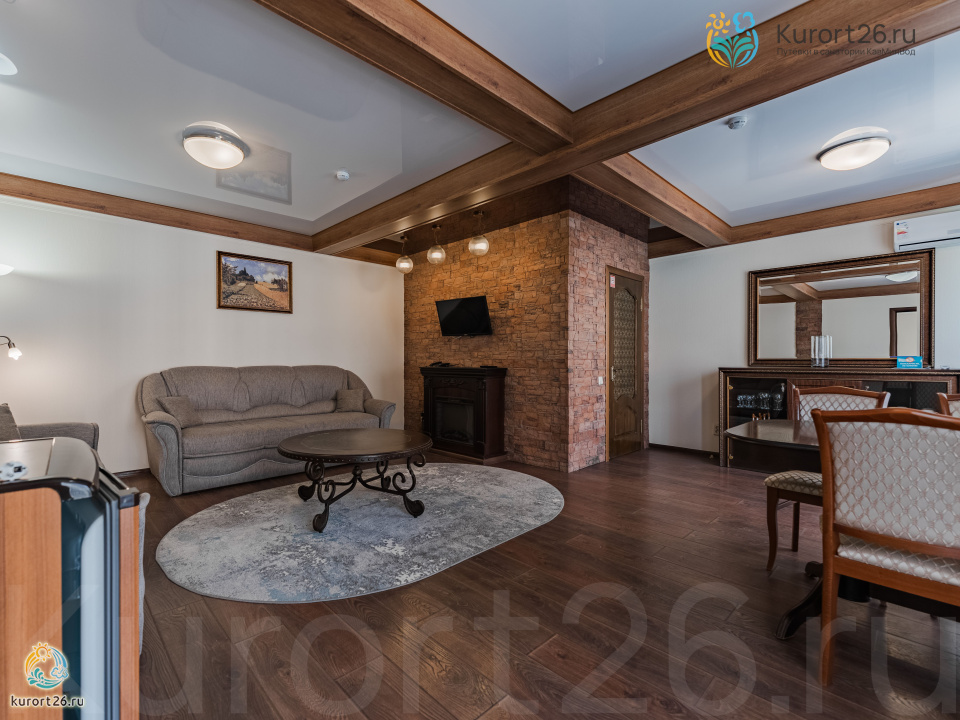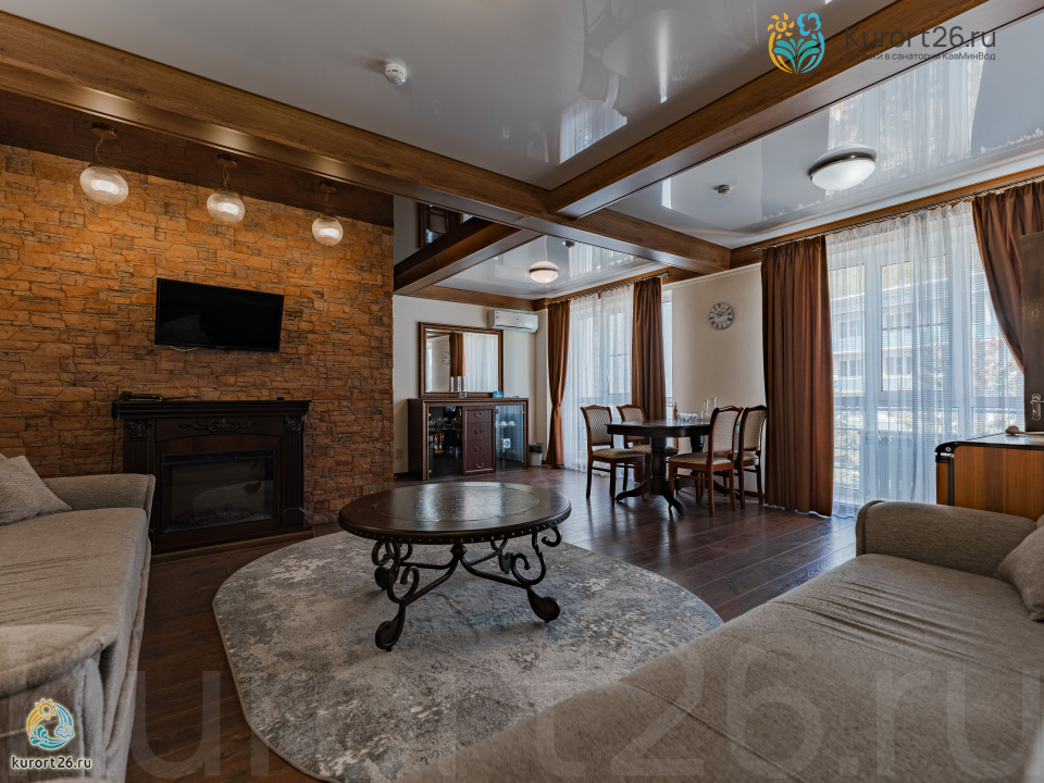 холодильник, кондиционер, телевизор, фен, набор чайной посуды, сейф, ванные принадлежности, двуспальная кровать, набор мягкой мебели, прикроватные тумбочки, диван, электрочайник, стол, ванная комната, камин электрический, набор полотенец