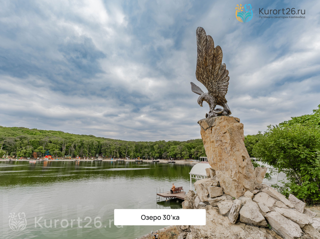 Санаторий «им. 30-летия Победы» располагается в центре Железноводска. Он стоит на берегу Курортного озера, в окружении естественного леса.