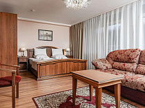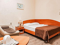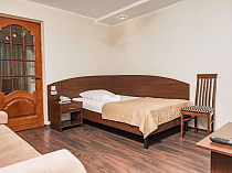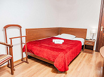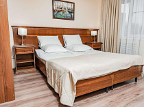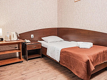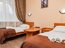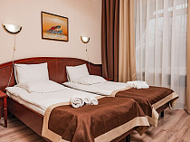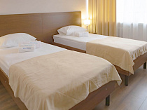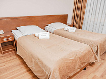холодильник, кондиционер, телевизор, фен, сейф, телефон, санузел с душевой кабиной, ванные принадлежности, электрочайник, зеркало, две односпальные кровати