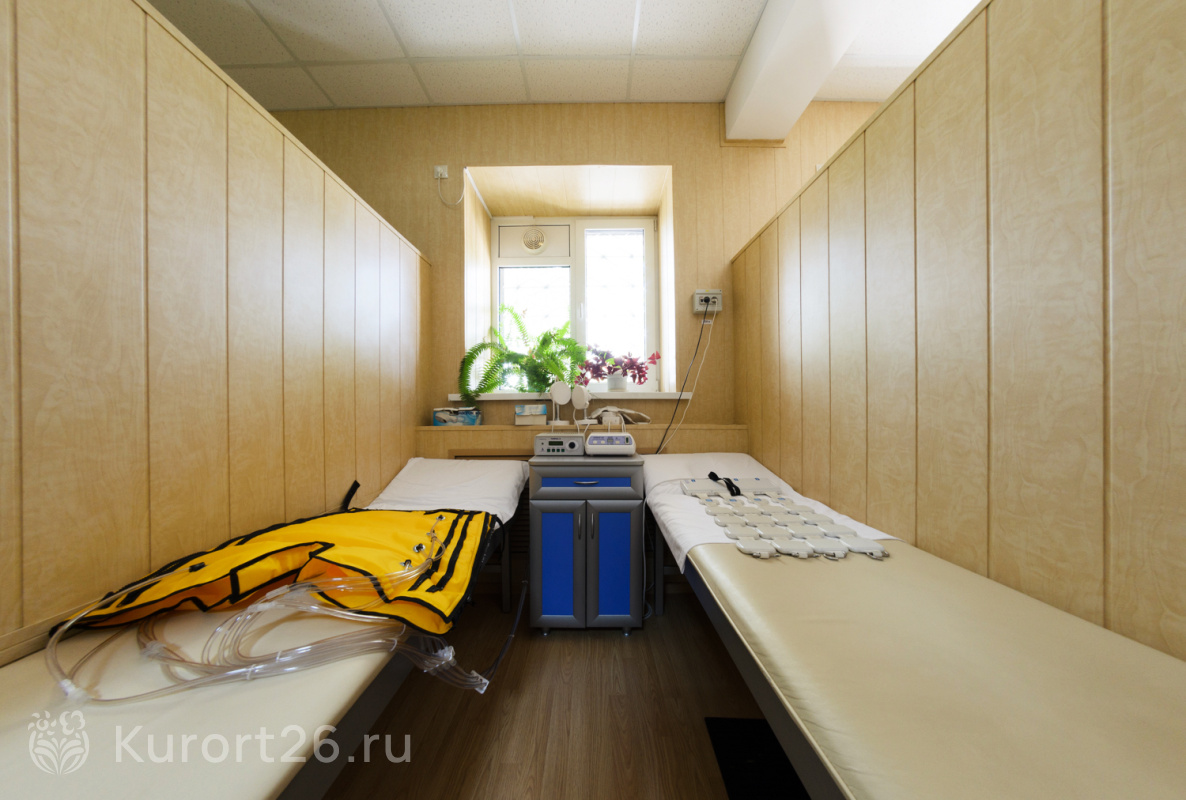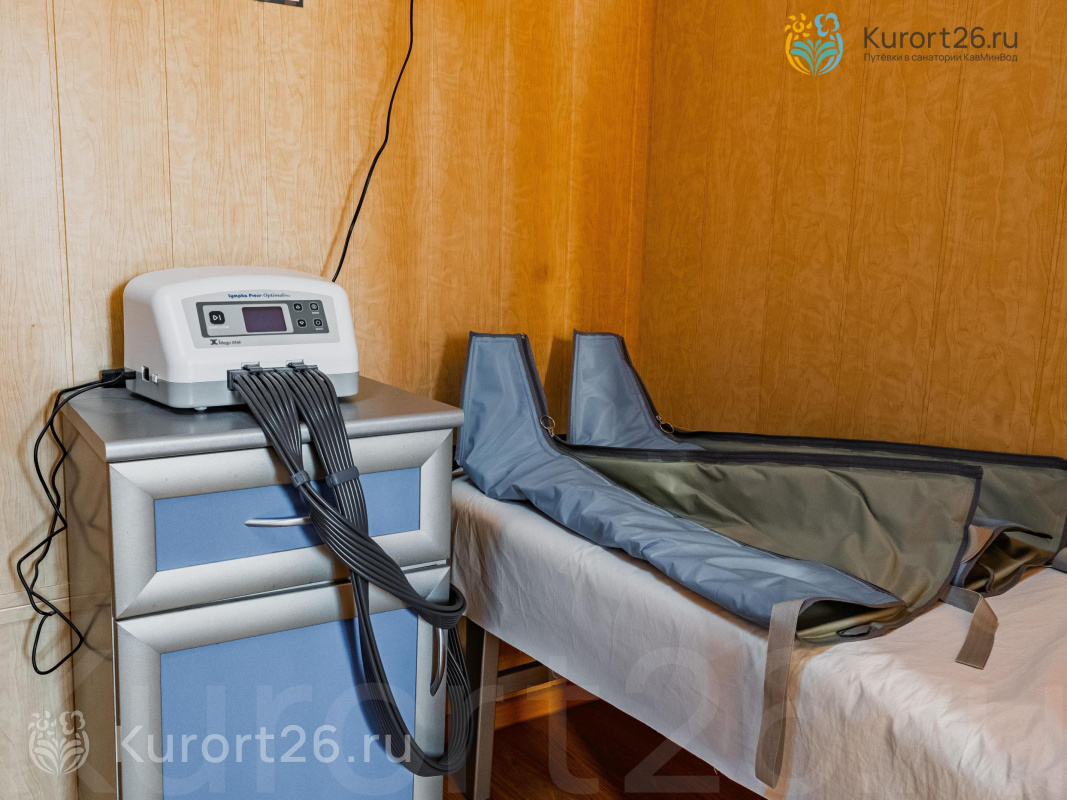 Лечение: ванны гидромассажные/пневмомассажер нижних конечностей или по типу «шорты», ванны минеральные/ванны пенно-солодковые, аппаратная физиотерапия, пневмомассажная камера, ЛФК, физио-/лазеро-/магнитотерапия, питьевое лечение, по показаниям назначаются процедуры Озон и ВЛОК.