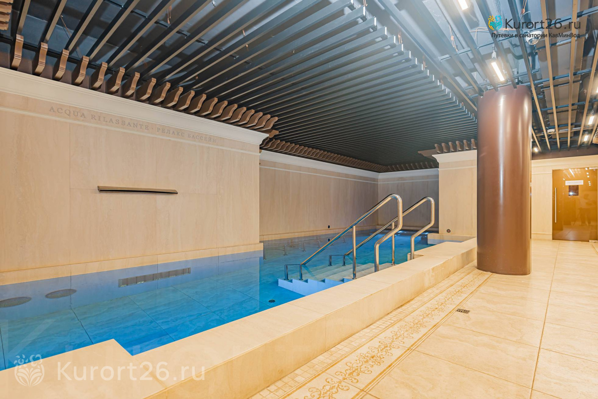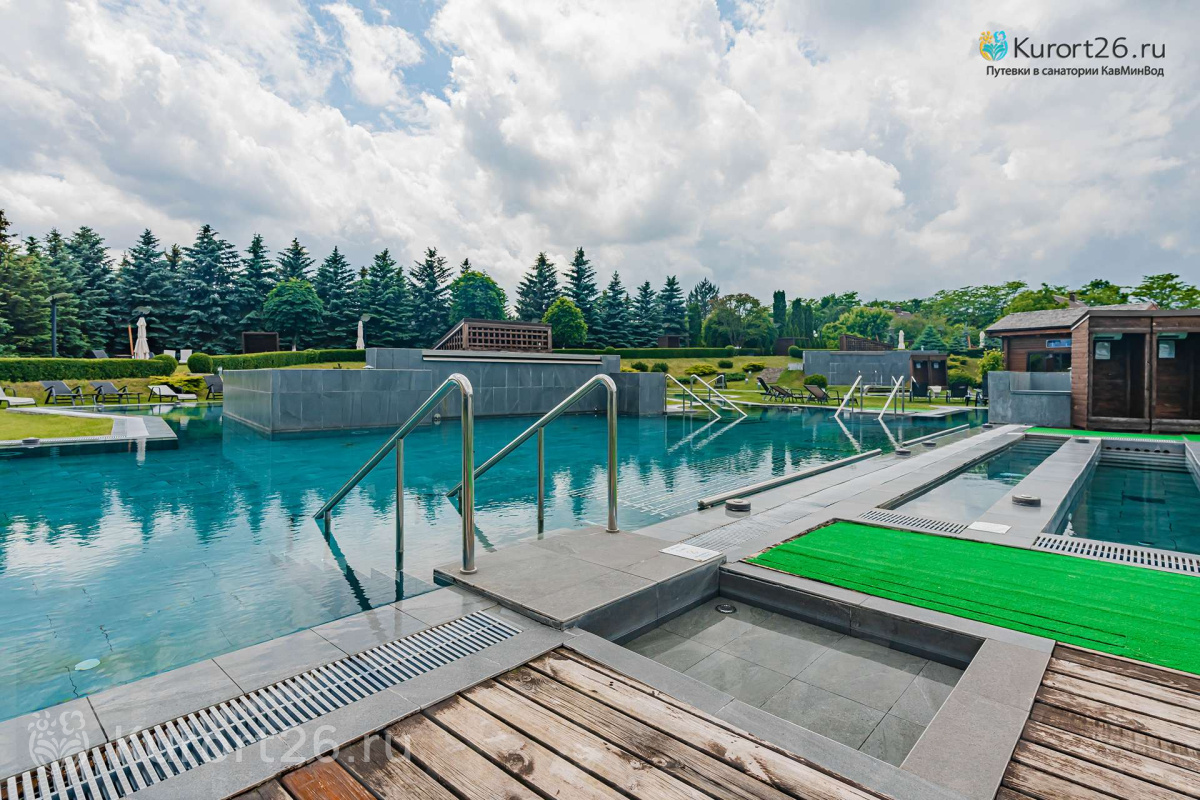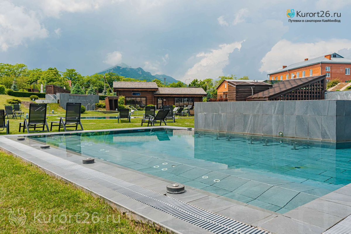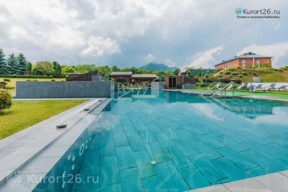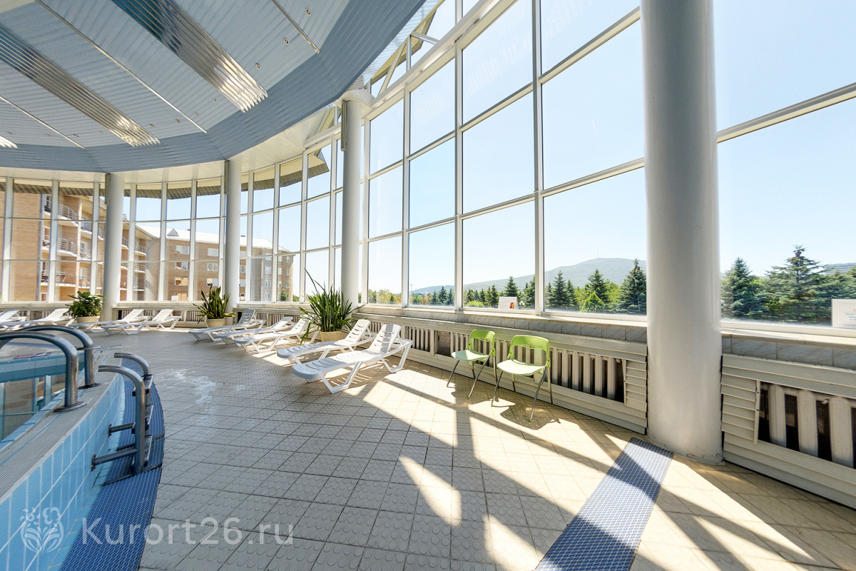 Бассейны открыты для всех гостей санатория, включая детей от двух лет. Для удобства отдыхающих предоставляются бесплатные шезлонги и полотенца. Просторные панорамные окна наполняют зону бассейнов естественным светом и открывают захватывающий вид на гору Бештау, позволяя наслаждаться природными пейзажами во время отдыха у воды.