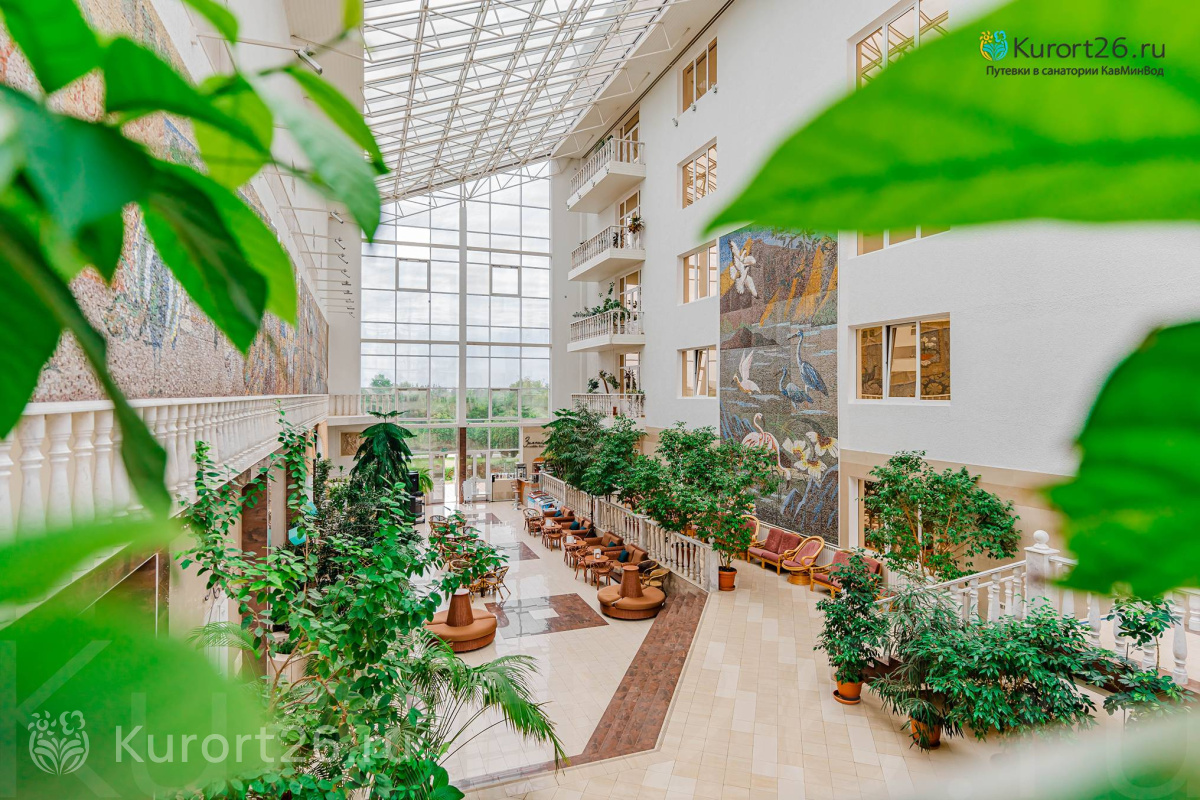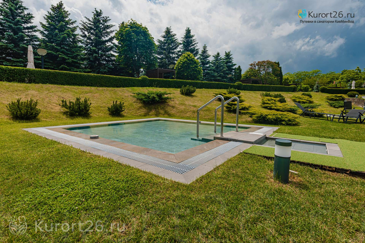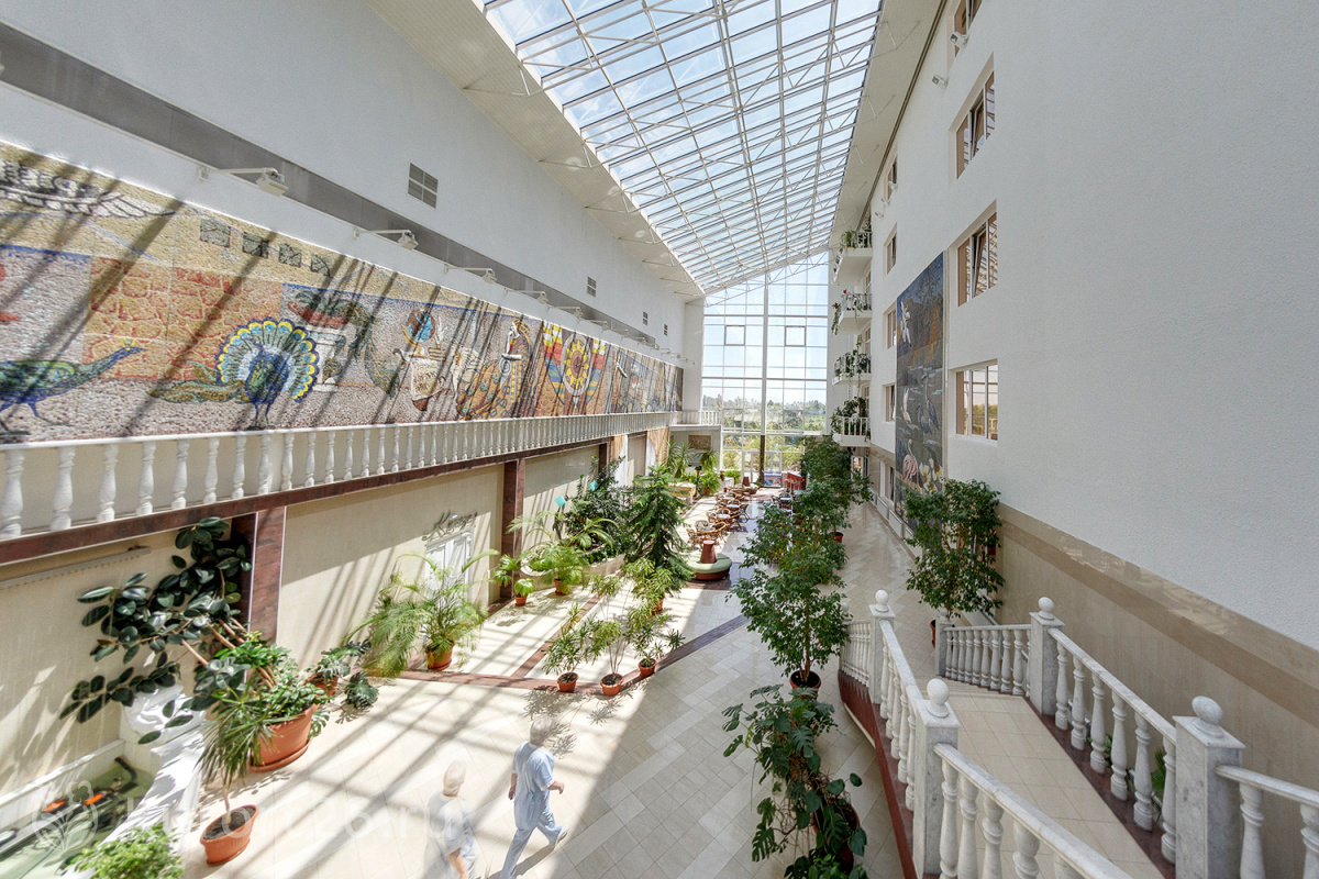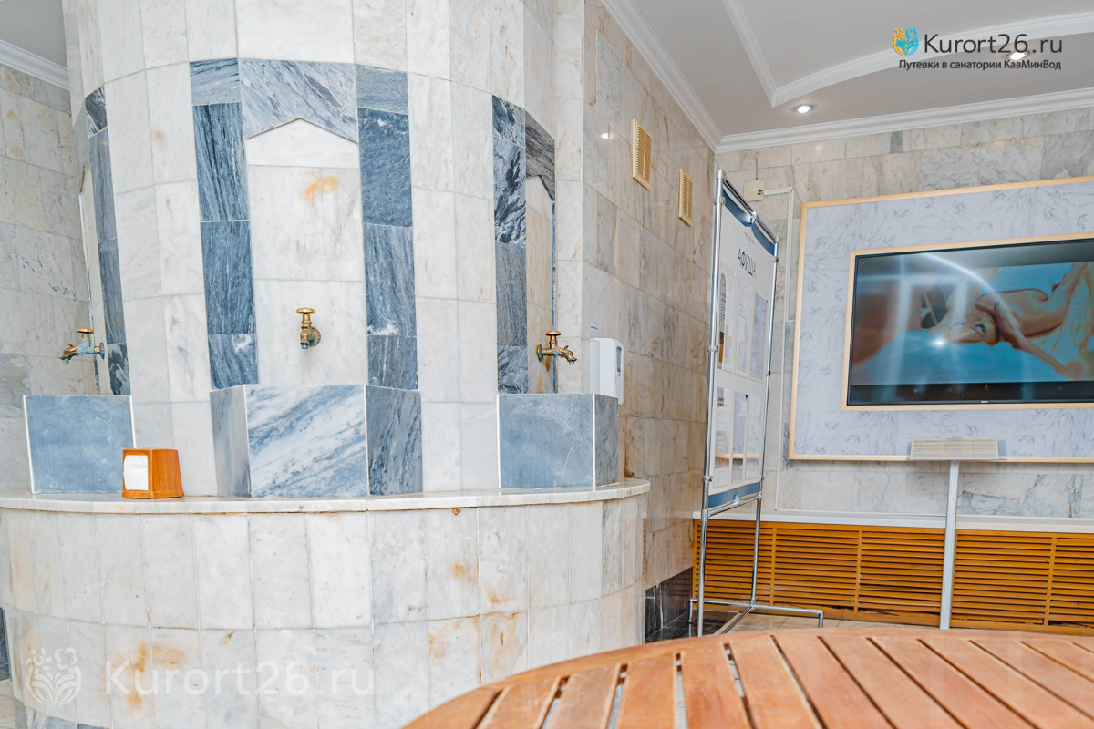 Бассейны открыты для всех гостей санатория, включая детей от двух лет. Для удобства отдыхающих предоставляются бесплатные шезлонги и полотенца. Просторные панорамные окна наполняют зону бассейнов естественным светом и открывают захватывающий вид на гору Бештау, позволяя наслаждаться природными пейзажами во время отдыха у воды.