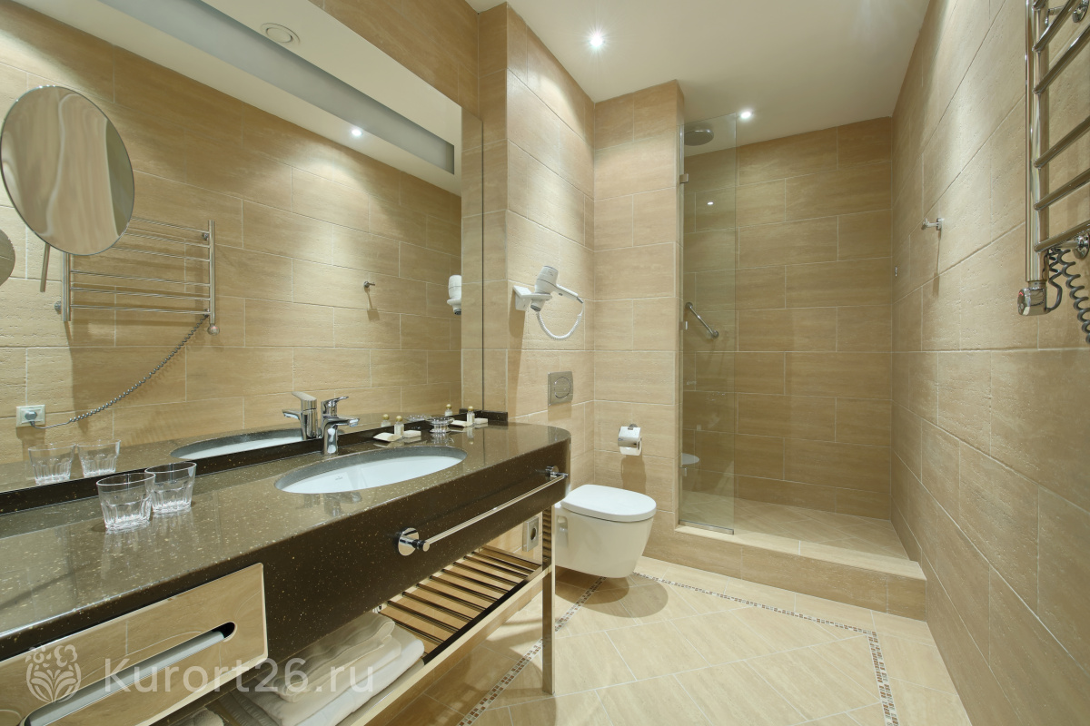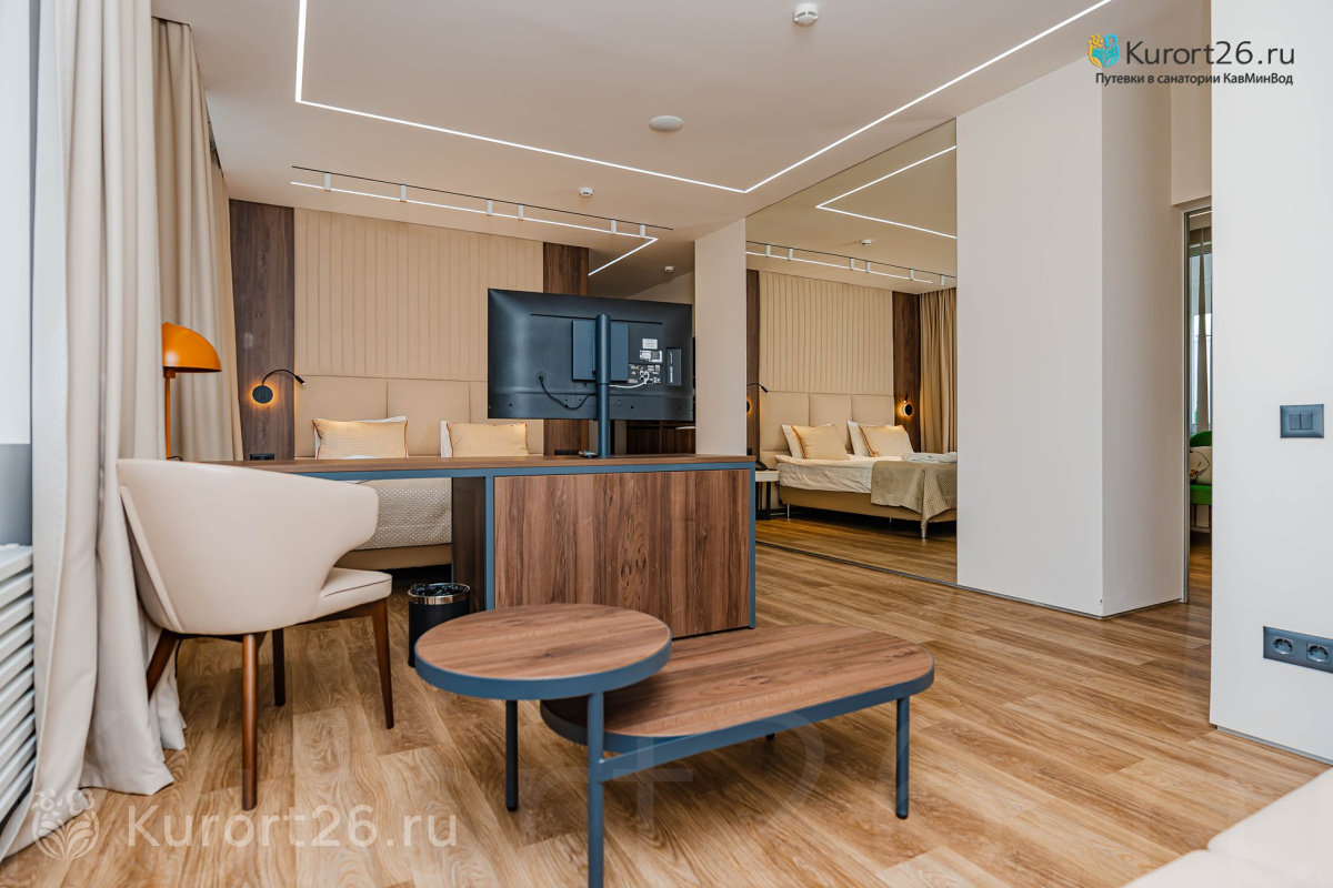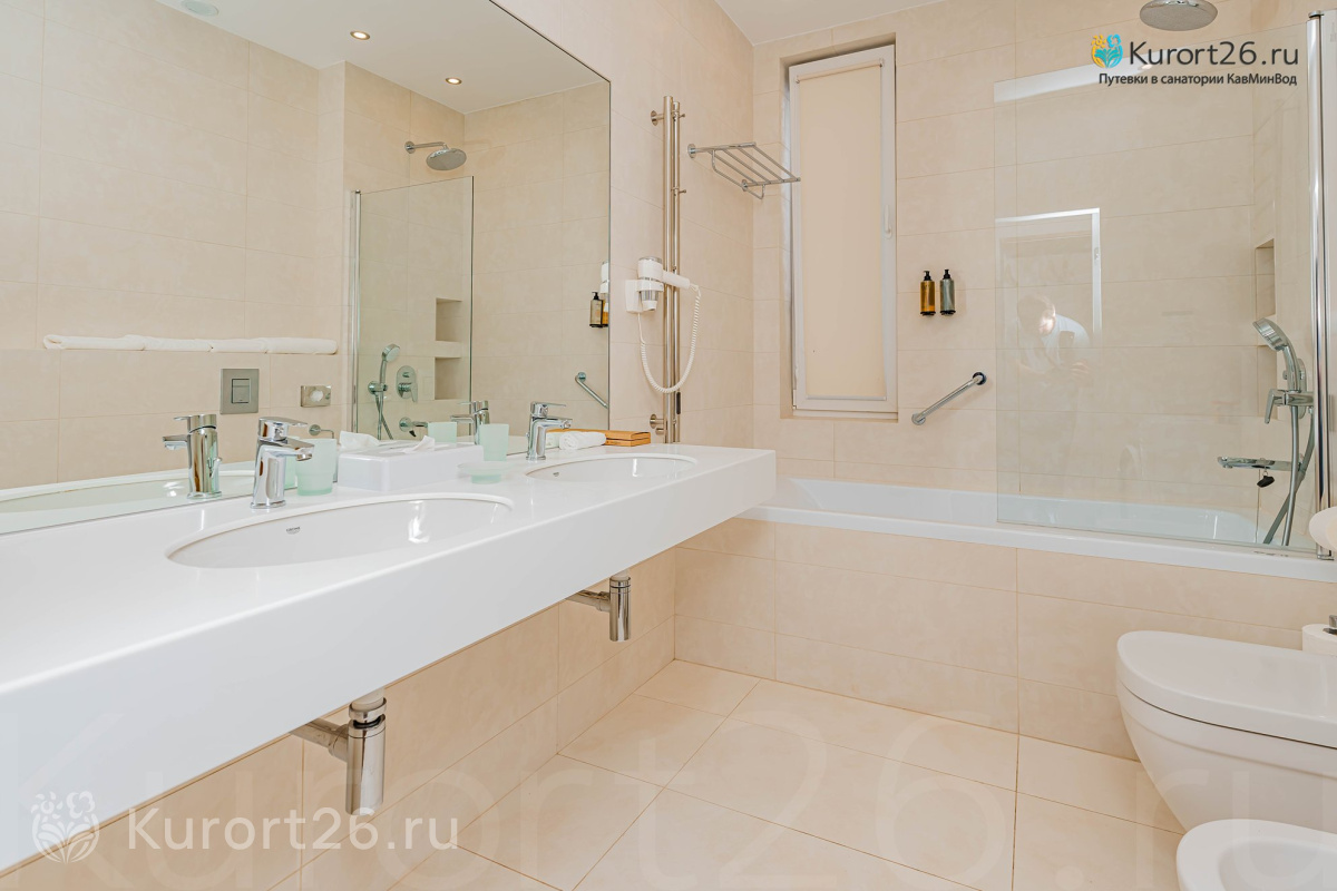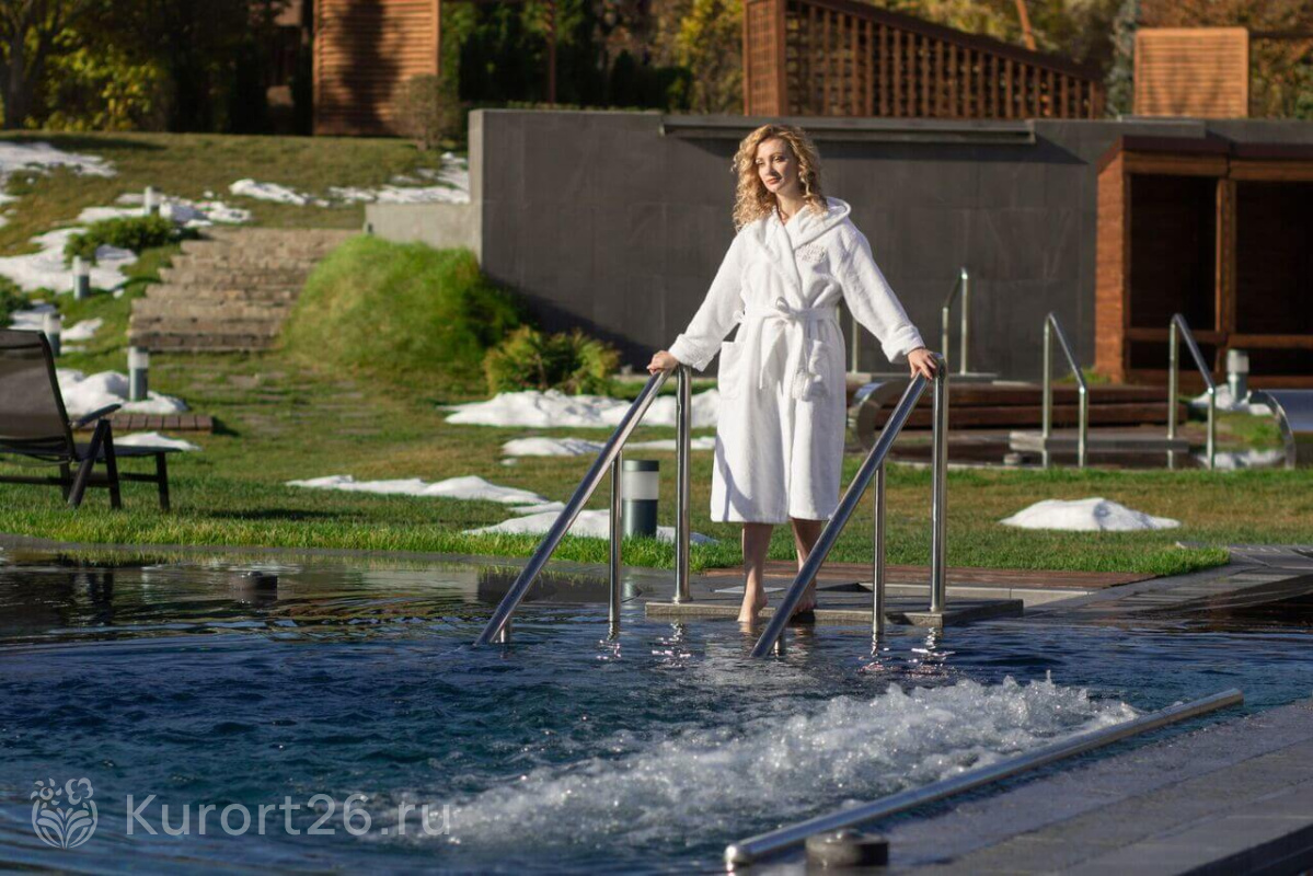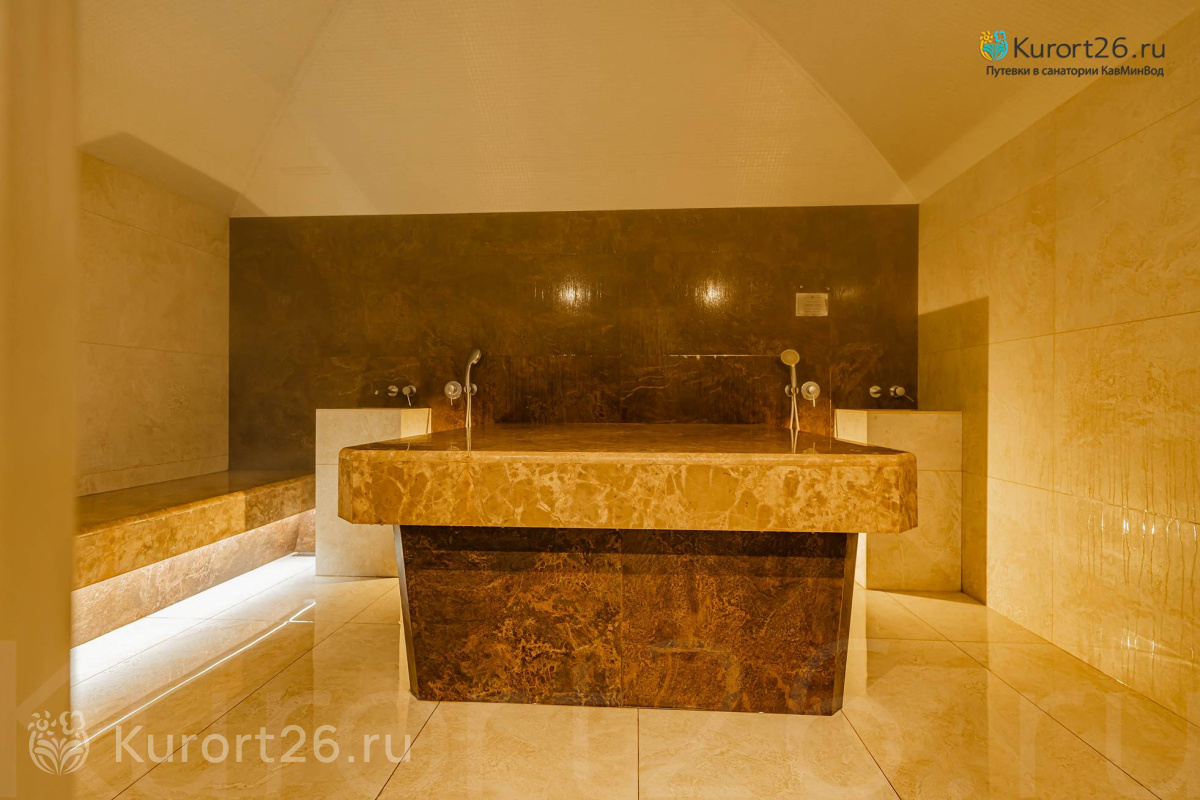 Бассейны открыты для всех гостей санатория, включая детей от двух лет. Для удобства отдыхающих предоставляются бесплатные шезлонги и полотенца. Просторные панорамные окна наполняют зону бассейнов естественным светом и открывают захватывающий вид на гору Бештау, позволяя наслаждаться природными пейзажами во время отдыха у воды.