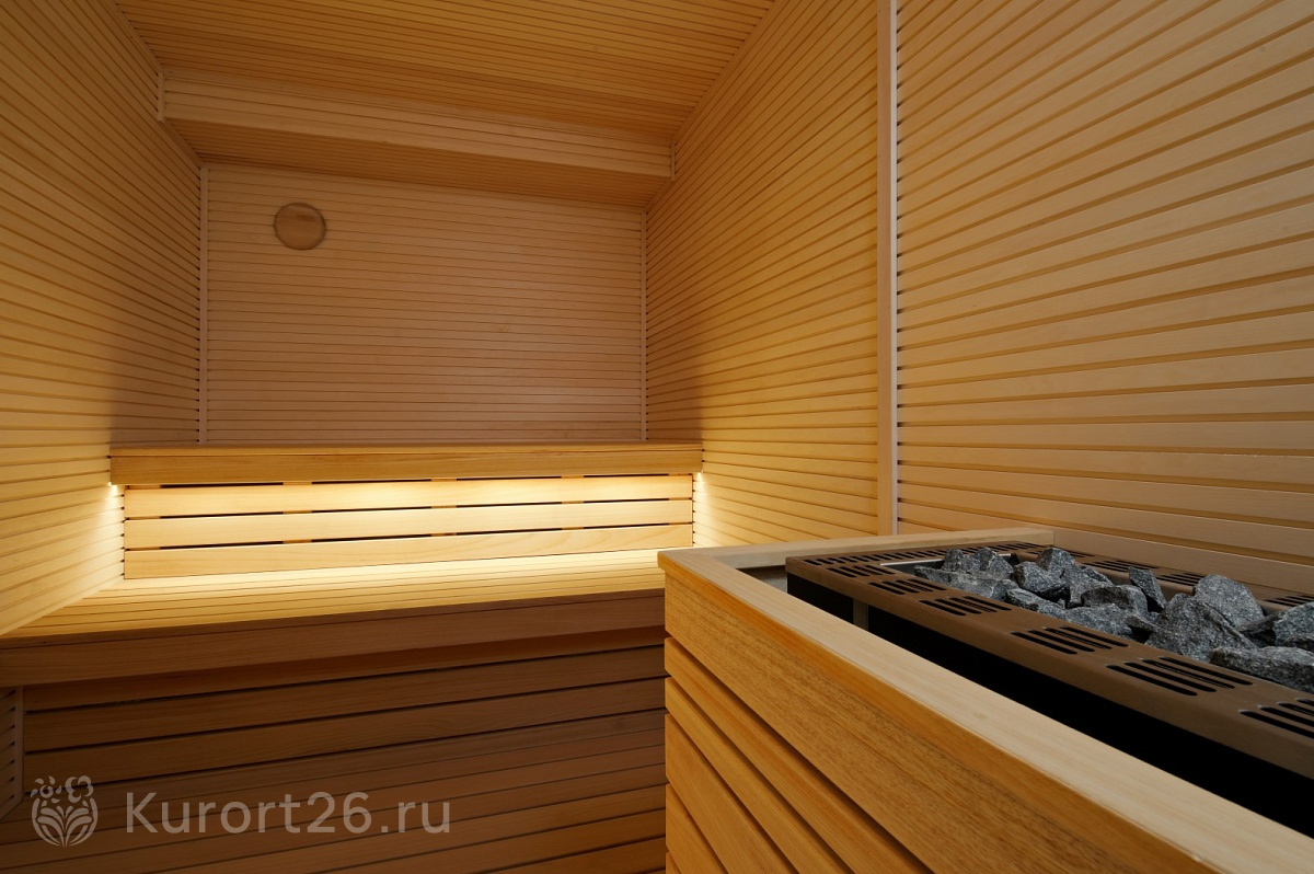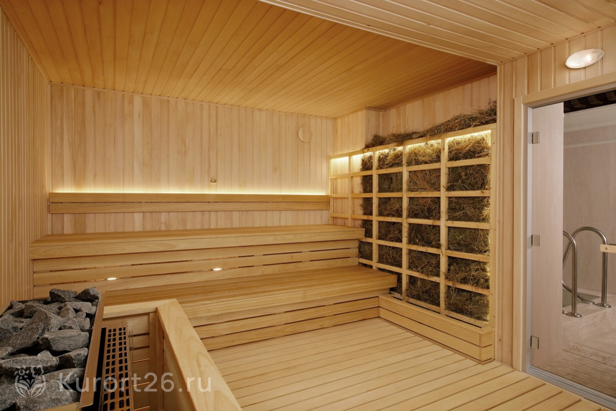 - Банный комплекс с выплывом в открытый бассейн терм: турецкий хаммам, римская баня, арома-сауна, солевая сауна, уличная баня, снегогенератор, купель, дорожка Кнейпа, душ впечатлений, комнаты отдыха с водяными матрасами