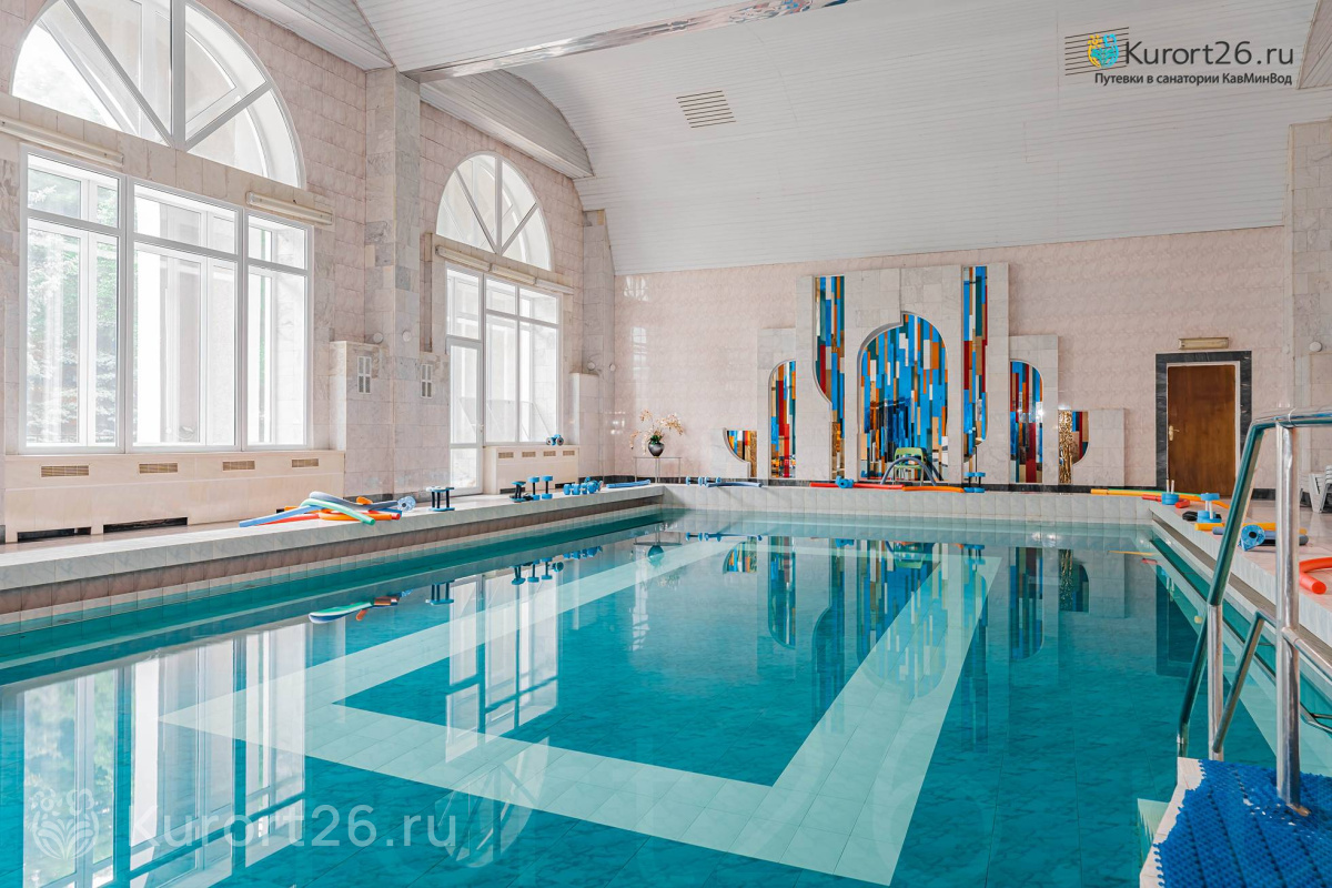 В санатории «Машук Аква-Терм» два крытых бассейна: большой бассейн 38х15 м с панорамными окнами для плавания и бассейн 13 м для занятий ЛФК, аквааэробикой и аквайогой. Система многоступенчатой фильтрации и циркуляции воды обеспечивает её кристальную чистоту. Оптимальная температура воды поддерживается круглый год.