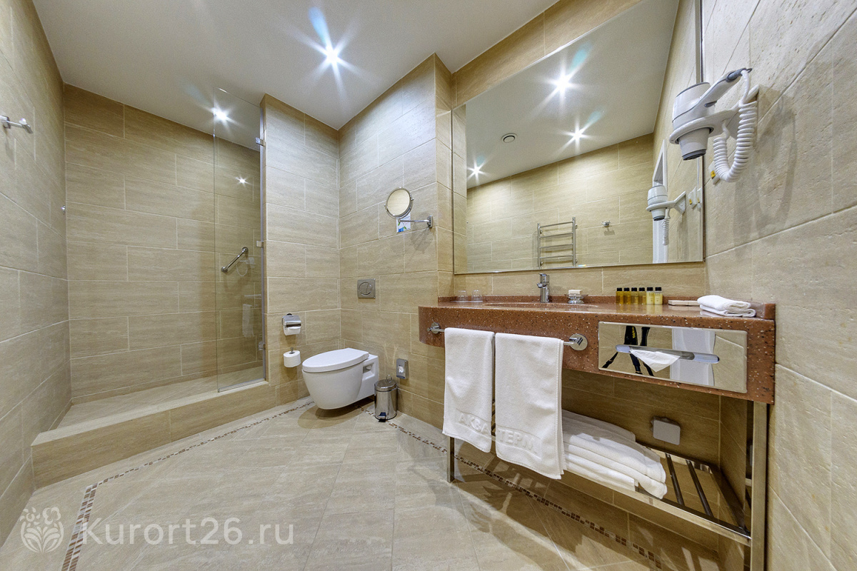 Геотермальный курорт «Машук Аква-Терм» расположен в сосновом бору, между горами Машук и Бештау, в 15 минутах на машине от курортных парков Железноводска и Пятигорска. Санаторий предоставляет ежедневный бесплатный трансфер до основных достопримечательностей.