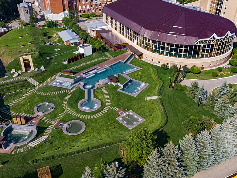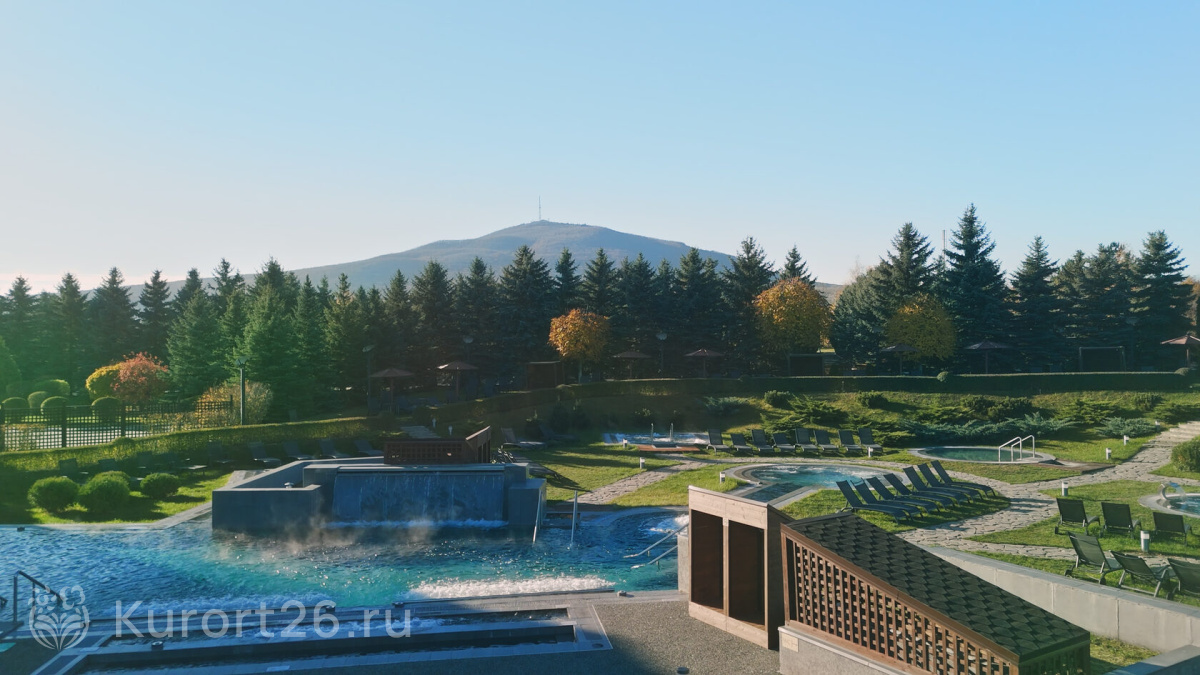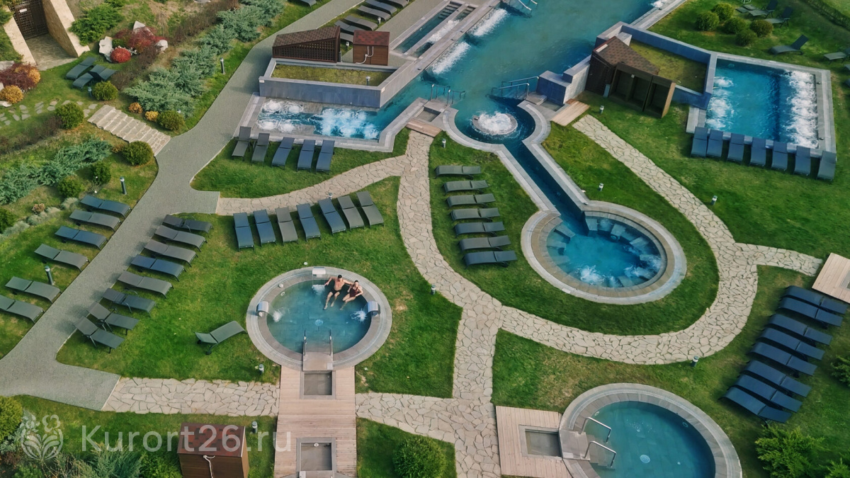 - Уникально! Открытые бассейны с горячими источниками «Итальянские термы, парк 12,5 га с озером, 6 видов бань, Центр развития мозга, 2 крытых бассейна, «шведский стол» и детокс-зал, 24 программы лечения, EMS-тренировки, большой спа-комплекс, вода «Легенда Кавказа»