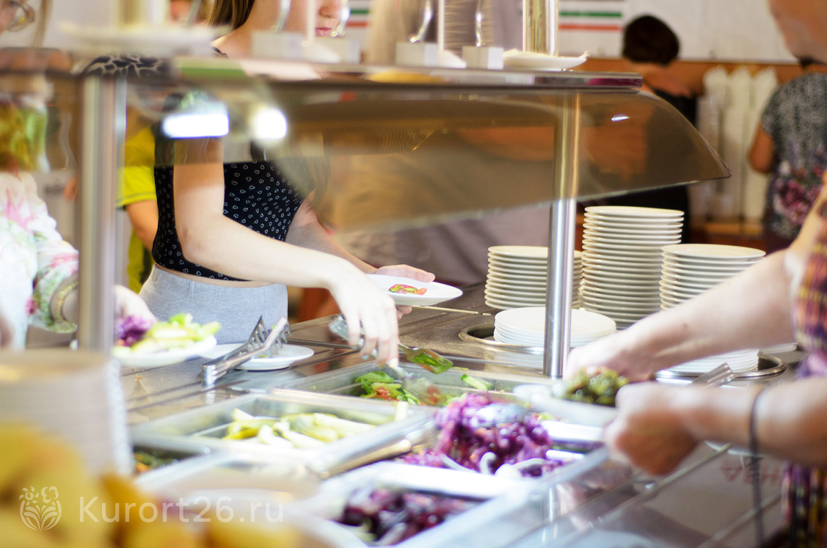 .В путёвку санатория «Машук Аква-Терм» включено трёхразовое питание «шведский стол» в нескольких залах.