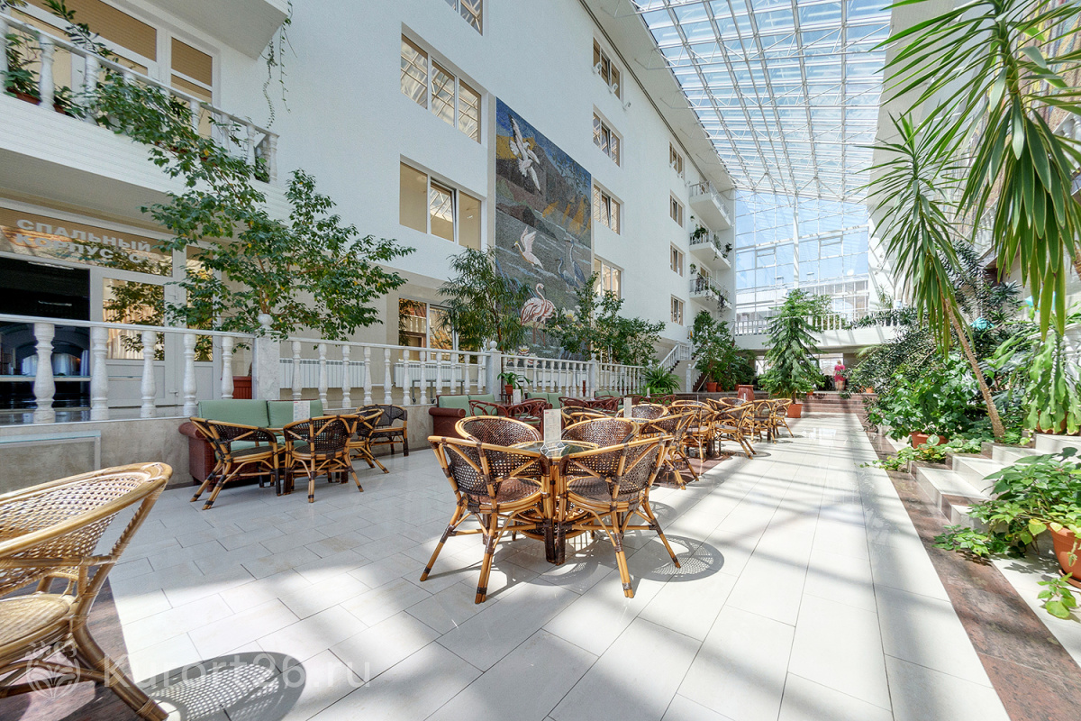 Уютный лобби-бар «Зимний сад» — идеальное место для лёгкого перекуса или отдыха за чашкой чая. Здесь можно насладиться ароматным кофе, полезными смузи и сезонными напитками.