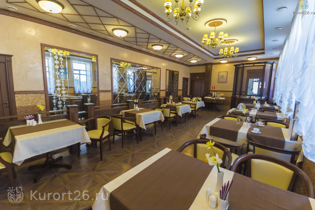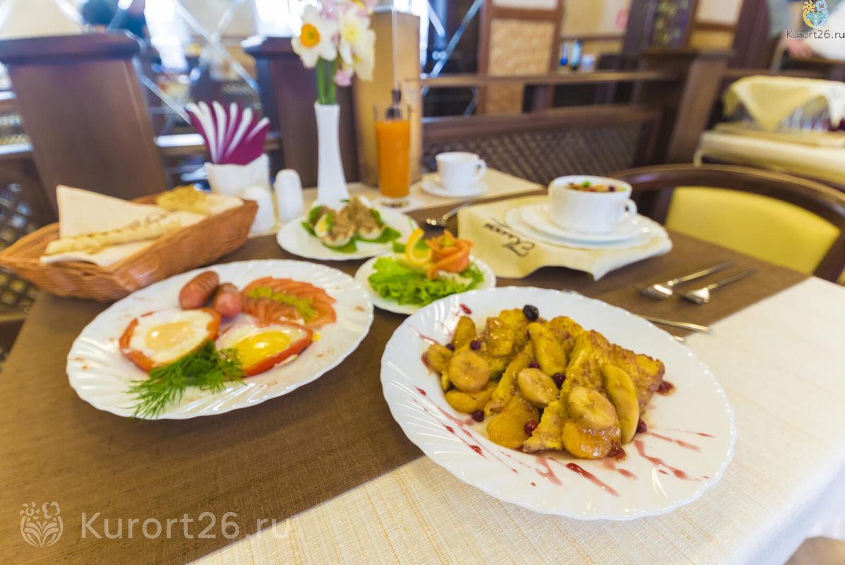 Все гости мецидинского центра «Княжна Мери» питаются три раза в день по системе диетического заказного меню. Отдыхающий питается в столовой согласно рекомендациям лечащего врача, с возможностью уточнить повару свои вкусовые предпочтения.