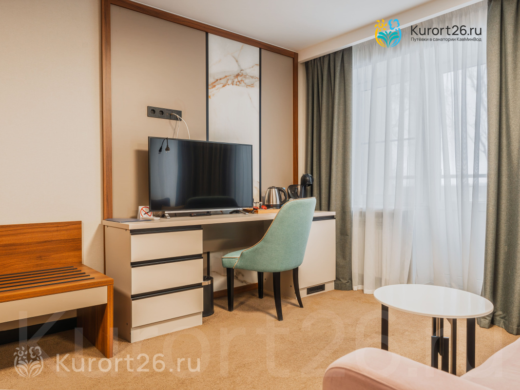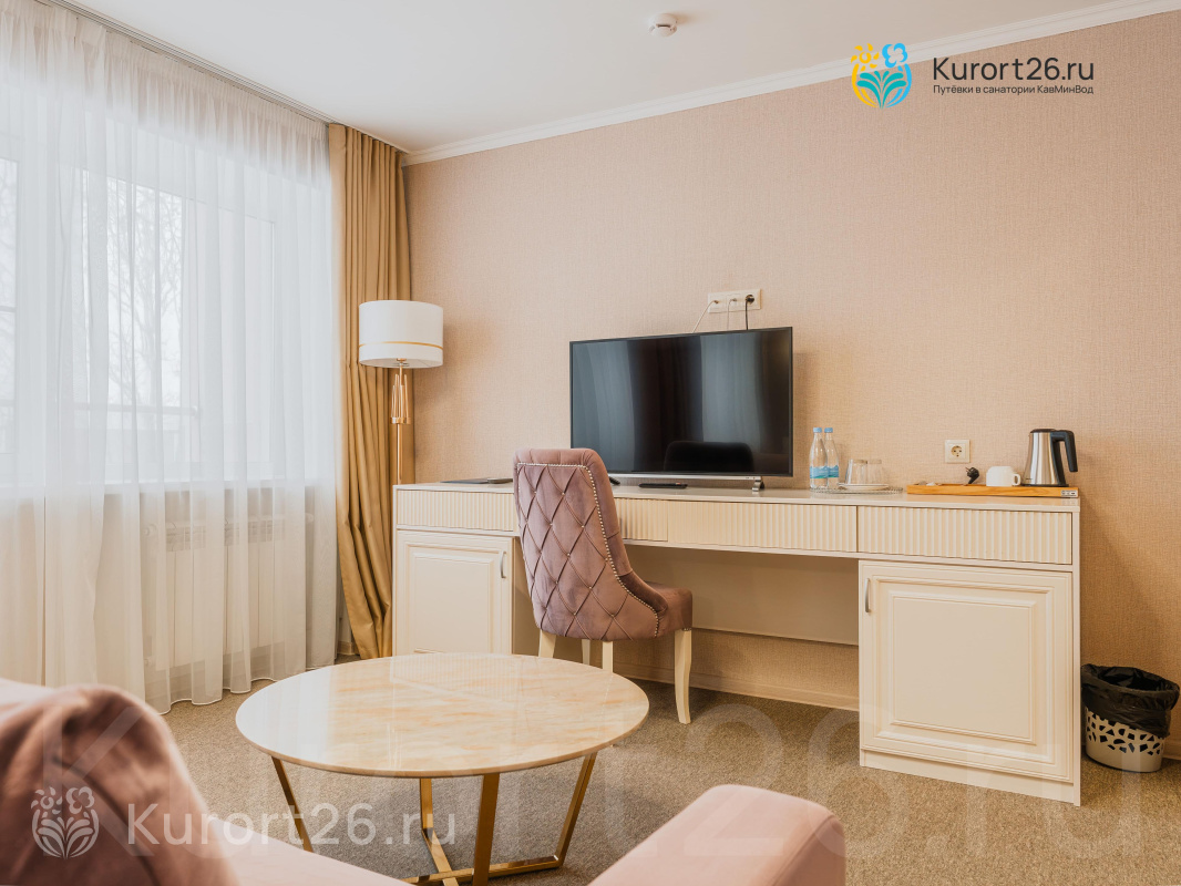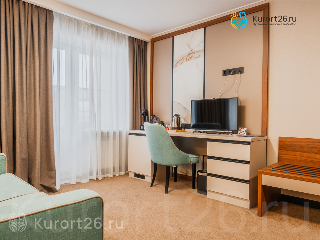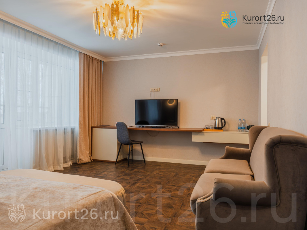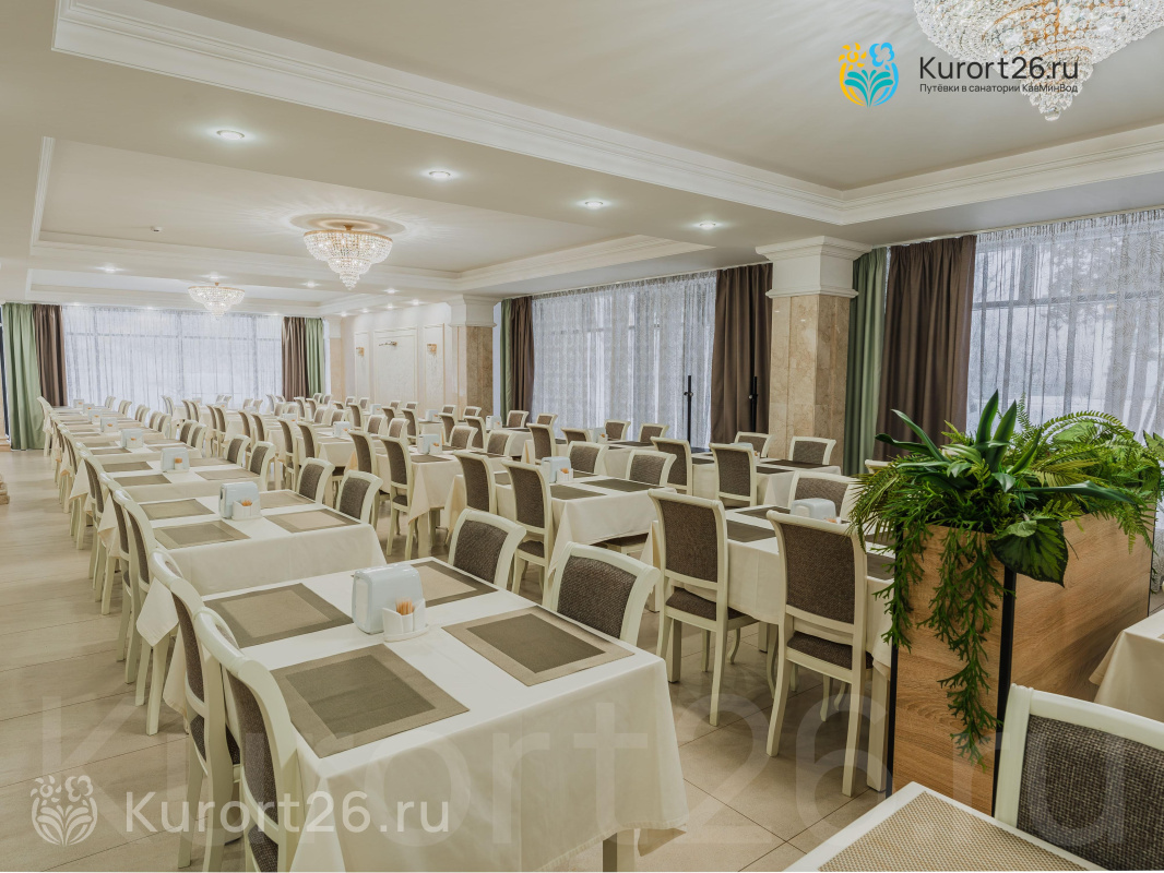 Проходили курс лечения с 12 по 22 мая 2025г. Санаторий очень понравился, нас встретили в аэропорту, довезли до санатория, далее нас зарегистрировали, дали ключи, заселили. Номер был уже готов, мы не ждали. О номере: сам он не большой, порой даже не могли разойтись с мужем), но это не главное, очень порадовало, что были косметические принадлежности, тапочки, халаты, а также был чайник, чай, сахар, вода всегда пополнялись! Уборка на 5+, девушки горничные труженицы, молодцы! Бельё, полотенца менялись несколько раз, даже не ожидали такого! Врач назначил нам лечение, подробно всё расспрашивал, давал советы, рекомендации! Всё процедуры расписаны по времени, никаких очередей, принимали везде очень хорошо. Очень хочется отметить инструктора ЛФК, Надежду, я с удовольствием ходила заниматься к ней! Она очень подробно объясняла методику выполнения упражнений, чтобы была польза, а не вред! Я имею достаточный опыт посещения фитнес клуба в нашем городе, поэтому есть с чем сравнивать! Для себя сделала много выводов, получила нужную информацию! Питание супер, очень всё вкусно, выбор блюд достаточный, выпечка)), большое спасибо поварам, всему обслуживающему персоналу. Поразила чистота везде, это очень приятно, Территория большая, ухоженная, много гуляли, есть большой плюс для нас, что данный санаторий не в городе, нет людской суеты, птицы поют, красивые виды, это прекрасно!Вечерний досуг тоже порадовал, каждый день были новые программы и интеллектуальные, танцевальные (бачата), различные шоу! Есть бесплатный трансфер несколько раз в неделю в Железноводск и Пятигорск. Мы успели съездить только в Железноводск, последний раз я там была лет 40 назад, парк преобразился, появилась благоустроенная зона возле озера с инфраструктурой. В заключение хотелось сказать, отдыхом остались довольны, оказывается и в России можно отдохнуть не хуже, даже ещё и лучше чем за границей! Ещё раз выражаю благодарность всему обслуживающему, медицинскому персоналу, работникам и поварам ресторана, всём кто организовывал наш досуг! Надеюсь, что мы ещё раз сюда приедем!