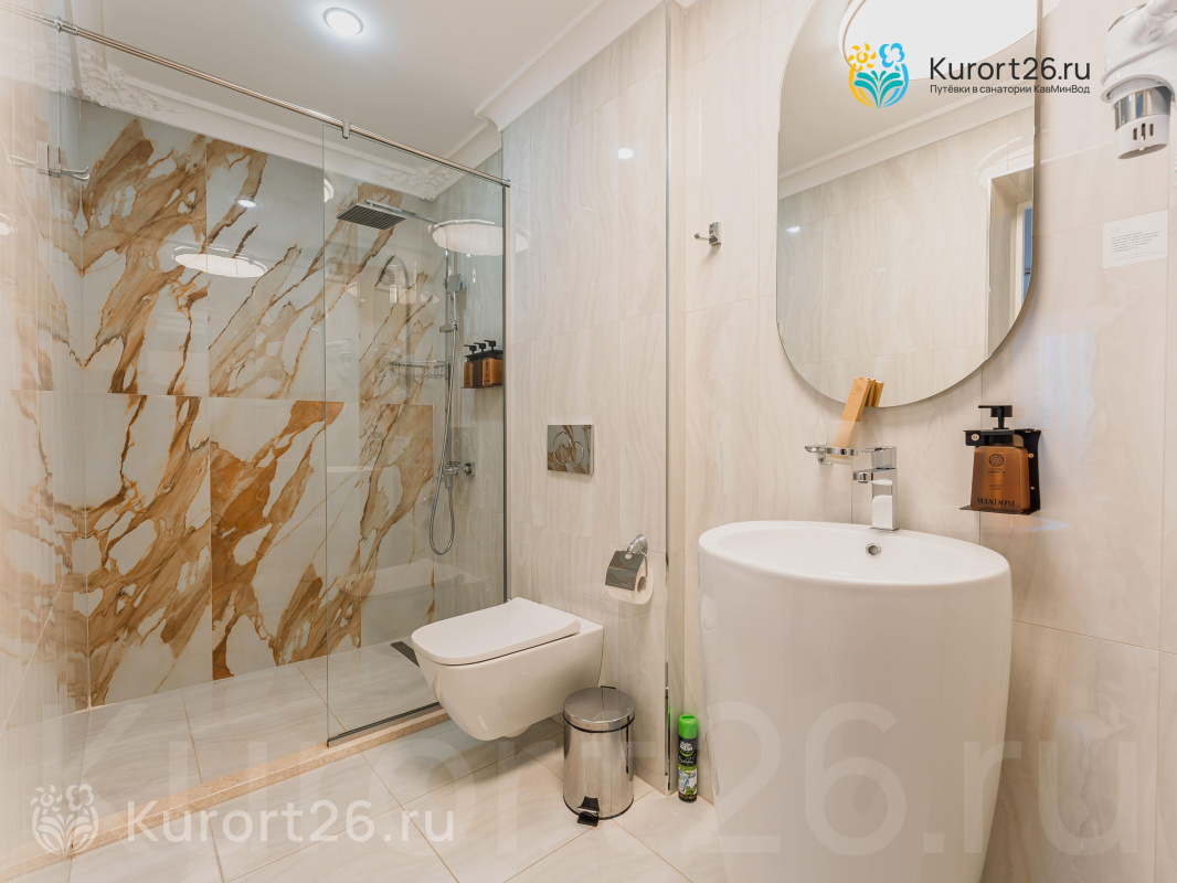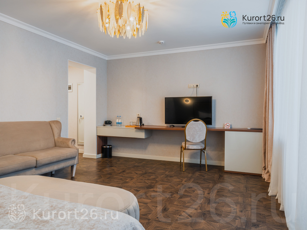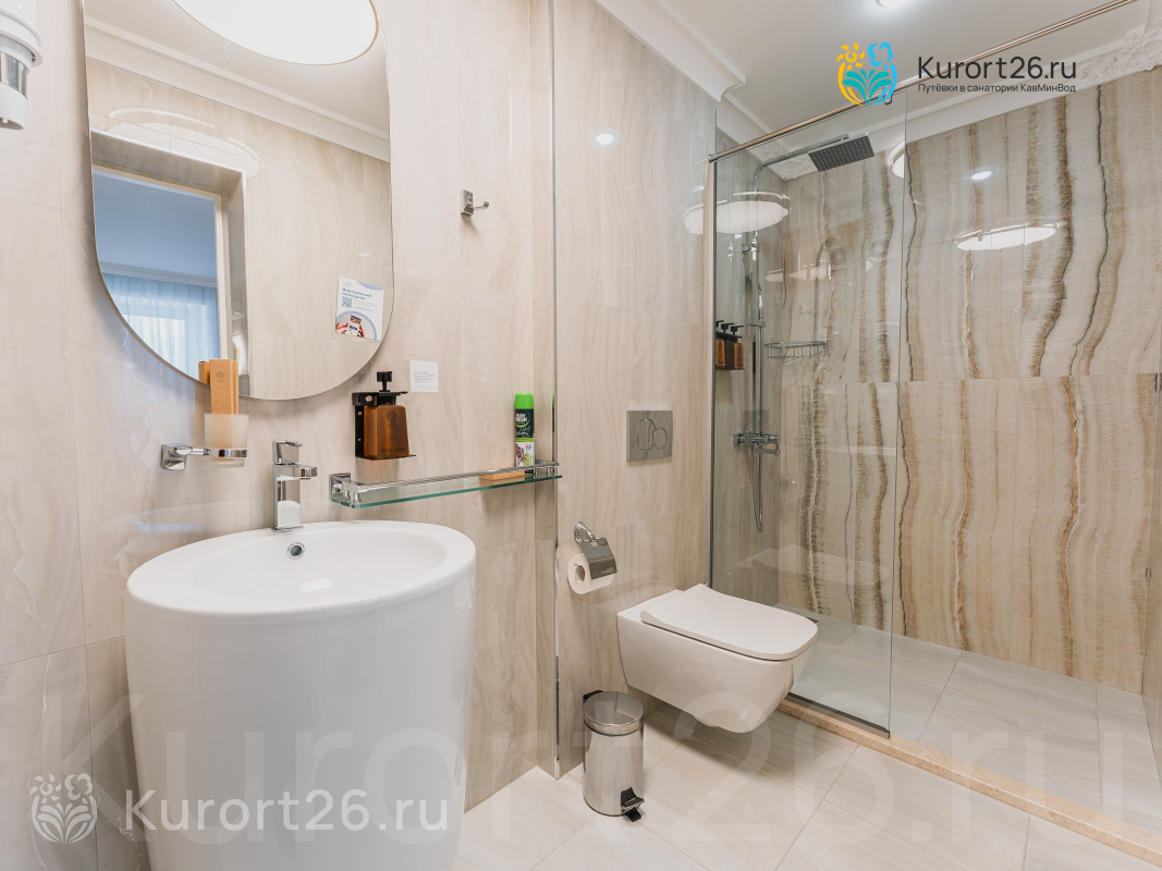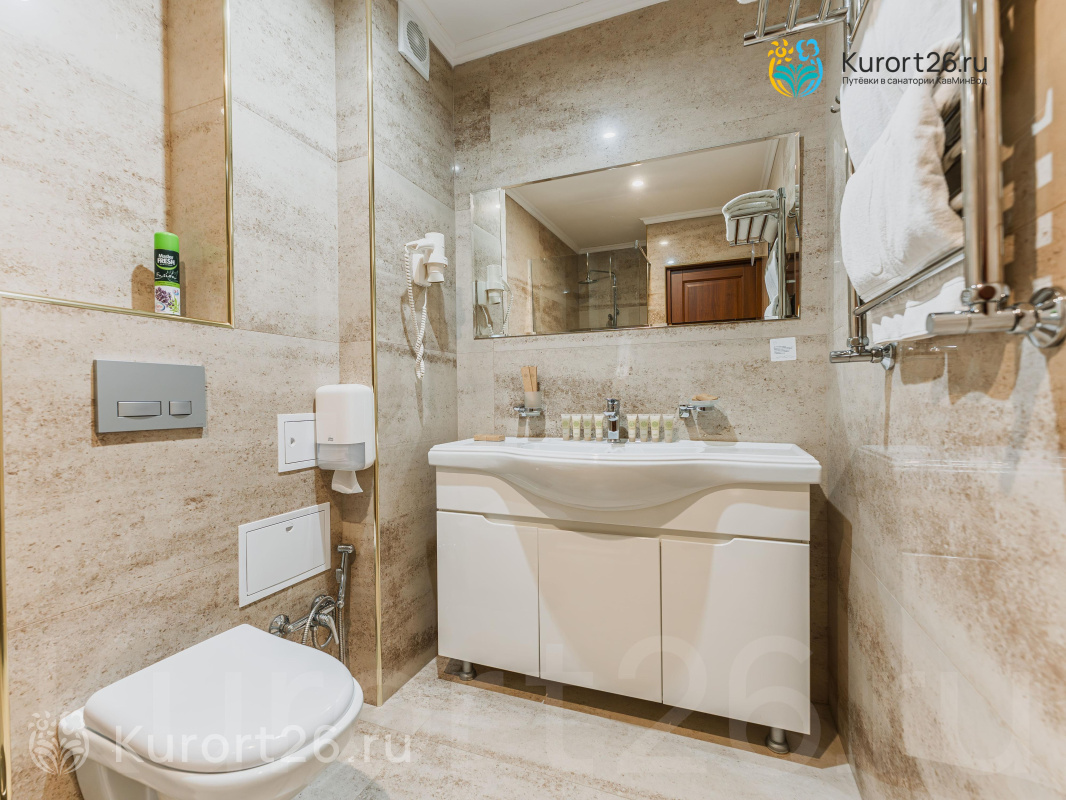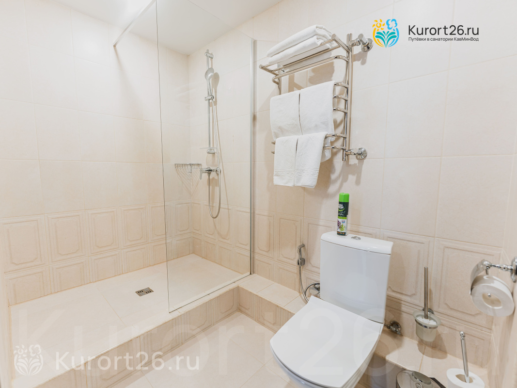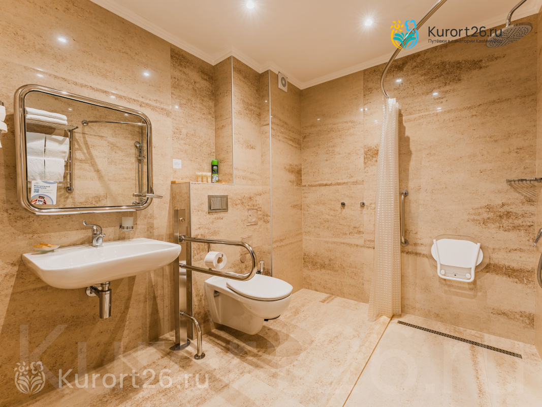Проходили курс лечения с 12 по 22 мая 2025г. Санаторий очень понравился, нас встретили в аэропорту, довезли до санатория, далее нас зарегистрировали, дали ключи, заселили. Номер был уже готов, мы не ждали. О номере: сам он не большой, порой даже не могли разойтись с мужем), но это не главное, очень порадовало, что были косметические принадлежности, тапочки, халаты, а также был чайник, чай, сахар, вода всегда пополнялись! Уборка на 5+, девушки горничные труженицы, молодцы! Бельё, полотенца менялись несколько раз, даже не ожидали такого! Врач назначил нам лечение, подробно всё расспрашивал, давал советы, рекомендации! Всё процедуры расписаны по времени, никаких очередей, принимали везде очень хорошо. Очень хочется отметить инструктора ЛФК, Надежду, я с удовольствием ходила заниматься к ней! Она очень подробно объясняла методику выполнения упражнений, чтобы была польза, а не вред! Я имею достаточный опыт посещения фитнес клуба в нашем городе, поэтому есть с чем сравнивать! Для себя сделала много выводов, получила нужную информацию! Питание супер, очень всё вкусно, выбор блюд достаточный, выпечка)), большое спасибо поварам, всему обслуживающему персоналу. Поразила чистота везде, это очень приятно, Территория большая, ухоженная, много гуляли, есть большой плюс для нас, что данный санаторий не в городе, нет людской суеты, птицы поют, красивые виды, это прекрасно!Вечерний досуг тоже порадовал, каждый день были новые программы и интеллектуальные, танцевальные (бачата), различные шоу! Есть бесплатный трансфер несколько раз в неделю в Железноводск и Пятигорск. Мы успели съездить только в Железноводск, последний раз я там была лет 40 назад, парк преобразился, появилась благоустроенная зона возле озера с инфраструктурой. В заключение хотелось сказать, отдыхом остались довольны, оказывается и в России можно отдохнуть не хуже, даже ещё и лучше чем за границей! Ещё раз выражаю благодарность всему обслуживающему, медицинскому персоналу, работникам и поварам ресторана, всём кто организовывал наш досуг! Надеюсь, что мы ещё раз сюда приедем!