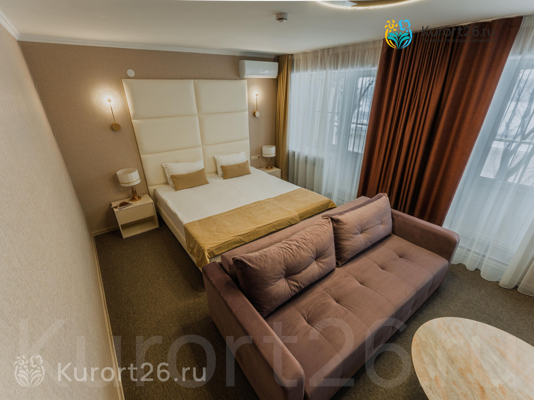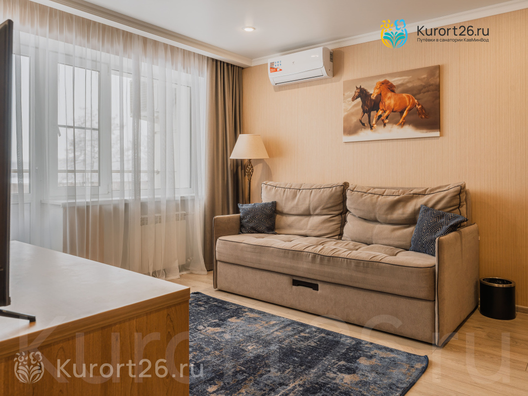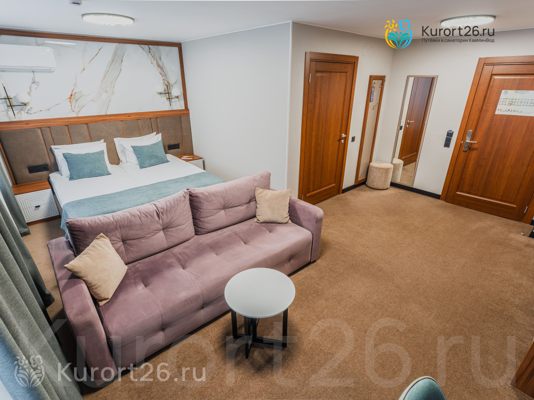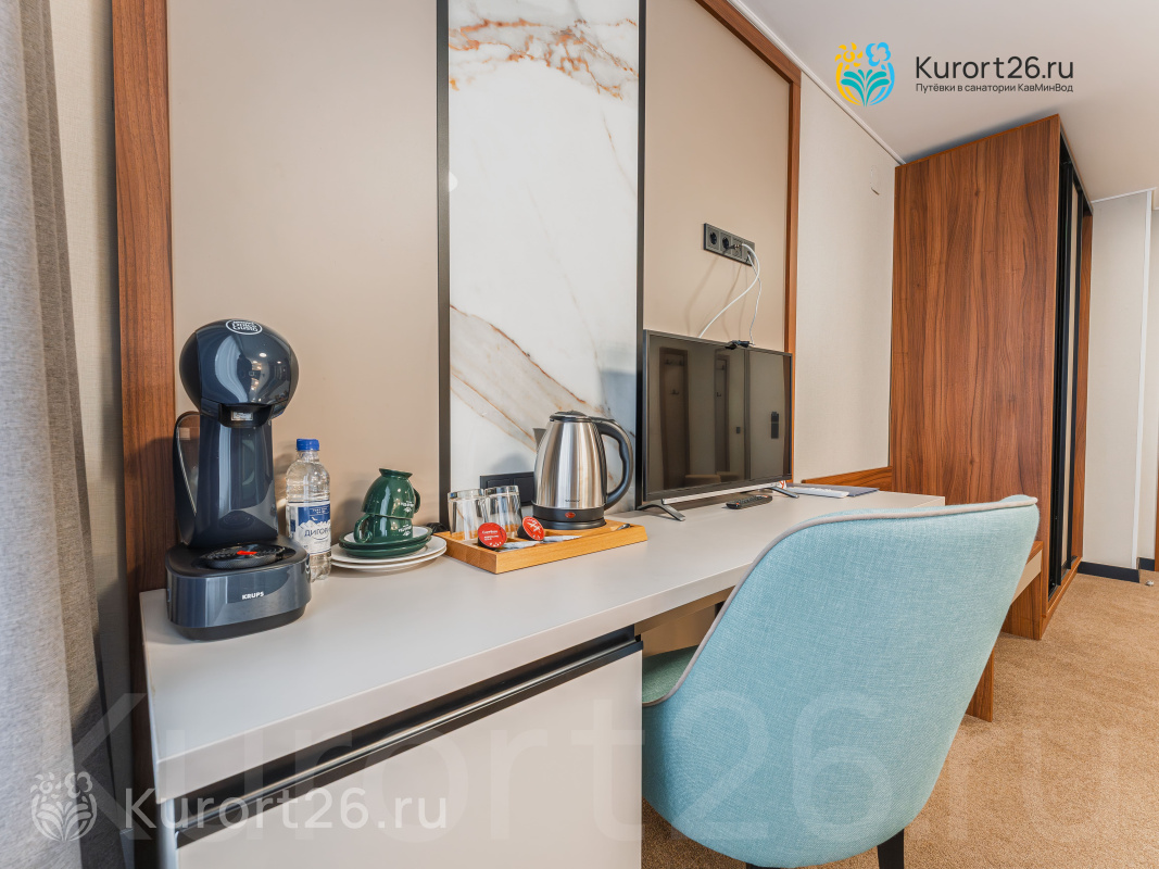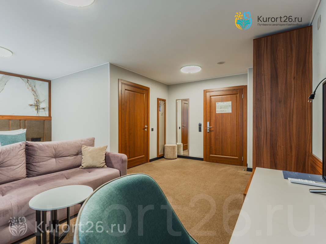 Проходили курс лечения с 12 по 22 мая 2025г. Санаторий очень понравился, нас встретили в аэропорту, довезли до санатория, далее нас зарегистрировали, дали ключи, заселили. Номер был уже готов, мы не ждали. О номере: сам он не большой, порой даже не могли разойтись с мужем), но это не главное, очень порадовало, что были косметические принадлежности, тапочки, халаты, а также был чайник, чай, сахар, вода всегда пополнялись! Уборка на 5+, девушки горничные труженицы, молодцы! Бельё, полотенца менялись несколько раз, даже не ожидали такого! Врач назначил нам лечение, подробно всё расспрашивал, давал советы, рекомендации! Всё процедуры расписаны по времени, никаких очередей, принимали везде очень хорошо. Очень хочется отметить инструктора ЛФК, Надежду, я с удовольствием ходила заниматься к ней! Она очень подробно объясняла методику выполнения упражнений, чтобы была польза, а не вред! Я имею достаточный опыт посещения фитнес клуба в нашем городе, поэтому есть с чем сравнивать! Для себя сделала много выводов, получила нужную информацию! Питание супер, очень всё вкусно, выбор блюд достаточный, выпечка)), большое спасибо поварам, всему обслуживающему персоналу. Поразила чистота везде, это очень приятно, Территория большая, ухоженная, много гуляли, есть большой плюс для нас, что данный санаторий не в городе, нет людской суеты, птицы поют, красивые виды, это прекрасно!Вечерний досуг тоже порадовал, каждый день были новые программы и интеллектуальные, танцевальные (бачата), различные шоу! Есть бесплатный трансфер несколько раз в неделю в Железноводск и Пятигорск. Мы успели съездить только в Железноводск, последний раз я там была лет 40 назад, парк преобразился, появилась благоустроенная зона возле озера с инфраструктурой. В заключение хотелось сказать, отдыхом остались довольны, оказывается и в России можно отдохнуть не хуже, даже ещё и лучше чем за границей! Ещё раз выражаю благодарность всему обслуживающему, медицинскому персоналу, работникам и поварам ресторана, всём кто организовывал наш досуг! Надеюсь, что мы ещё раз сюда приедем!