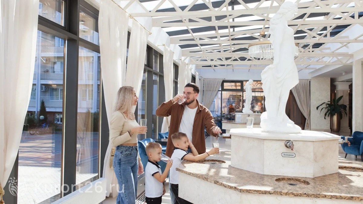 • Собственный бювет с природной минеральной водой «Славяновская» (горячая и холодная)