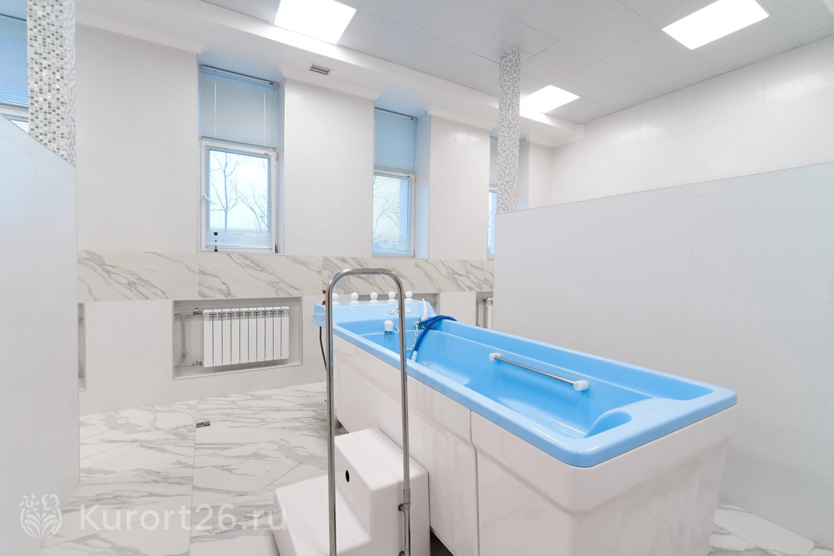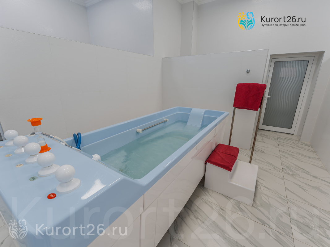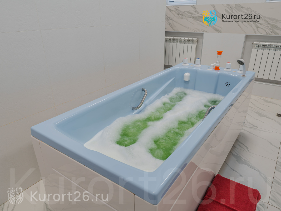 • Минеральные ванны на основе природной воды. Ванны дополняются различными соборами: для похудения, очищения кожи, расслабления и другими. Минеральные ванны ускоряют обмен веществ и регенерацию, улучшают кровообращение и снимают спазмы, повышают сопротивляемость организма. Минеральная вода Железноводска уникальна по своему составу — фтор, йод и бром успокаивают нервную систему; цинк, литий и никель нормализуют ферментно-гормональный баланс.