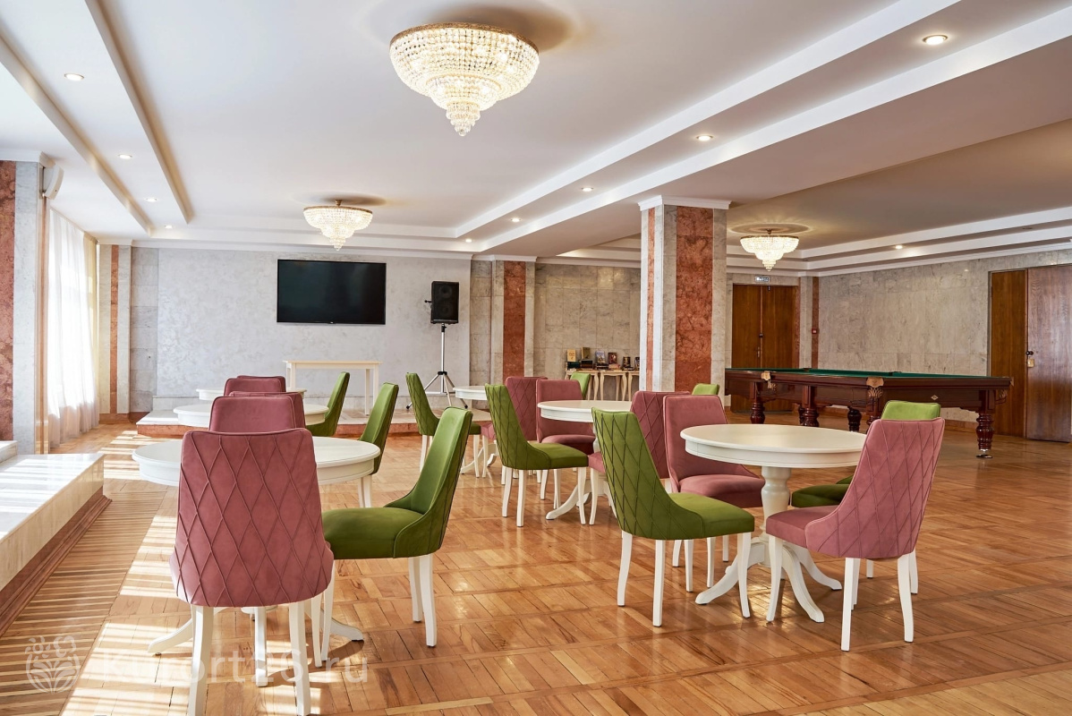 • В 2022 году в санатории проведена полная реновация: обновлен номерной фонд, медицинский центр, зоны отдыха, бассейн и тренажерный зал