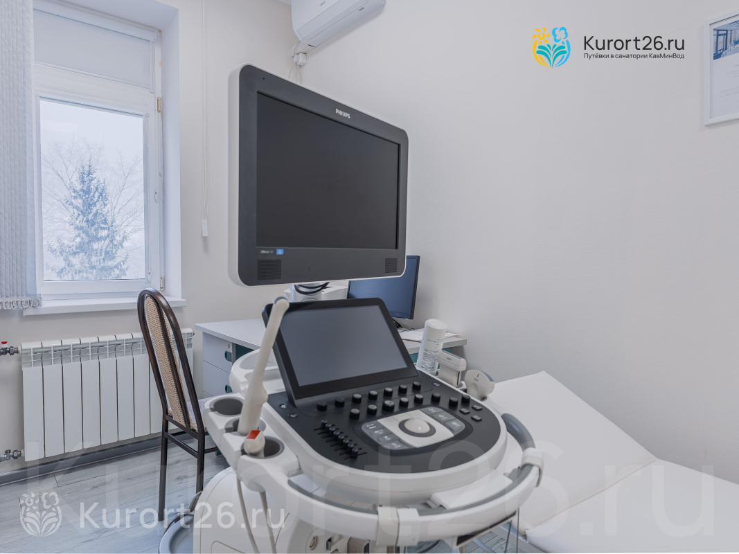 Санаторий оснащен современным оборудованием для диагностики: УЗИ, эхокардиография, дуплексное сканирование артерий, ректороманоскопия, кольпоскопия, биоимпедансометрия (оценка соотношения мышц, жира и воды в организме).