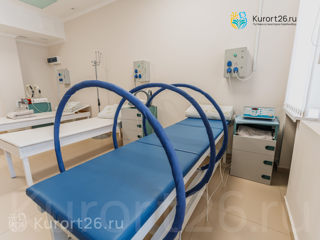 • Более 20 видов физиотерапии. Грязелечение: аппликации и общая грязь. Бальнеотерапия: более 25 видов лечебных ванн и душей. Массаж — классический и аппаратный. Электросон. Озонотерапия и карбокситерапия. Соляная пещера и ингаляции. Общая криотерапия