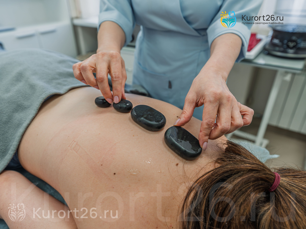• Стоун-массаж — расслабляющий массаж горячими вулканическими камнями с эфирными маслами: глубоко прогревает мышцы, улучшает кровообращение и лимфоток, снимает спазмы и боли в суставах, омолаживает кожу.