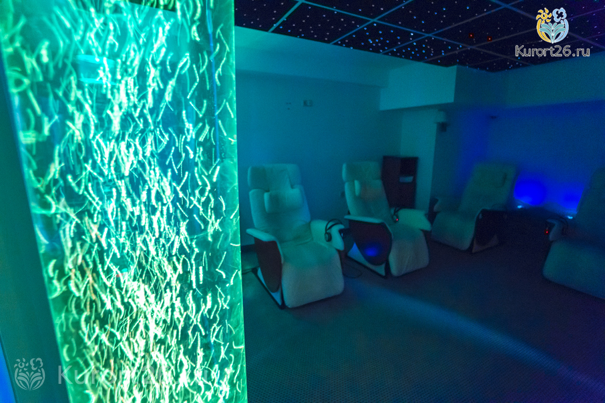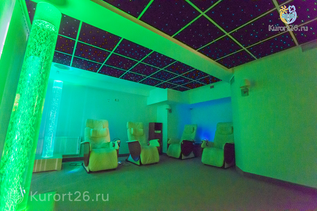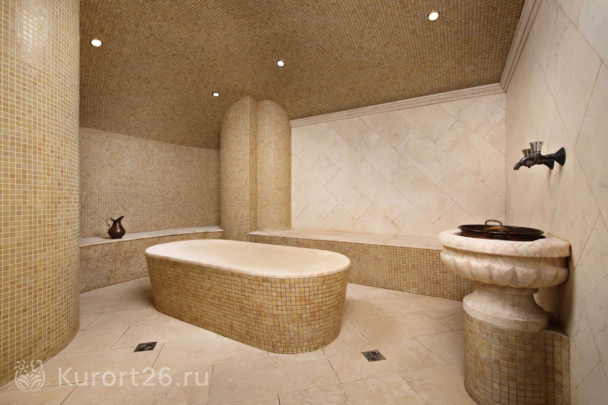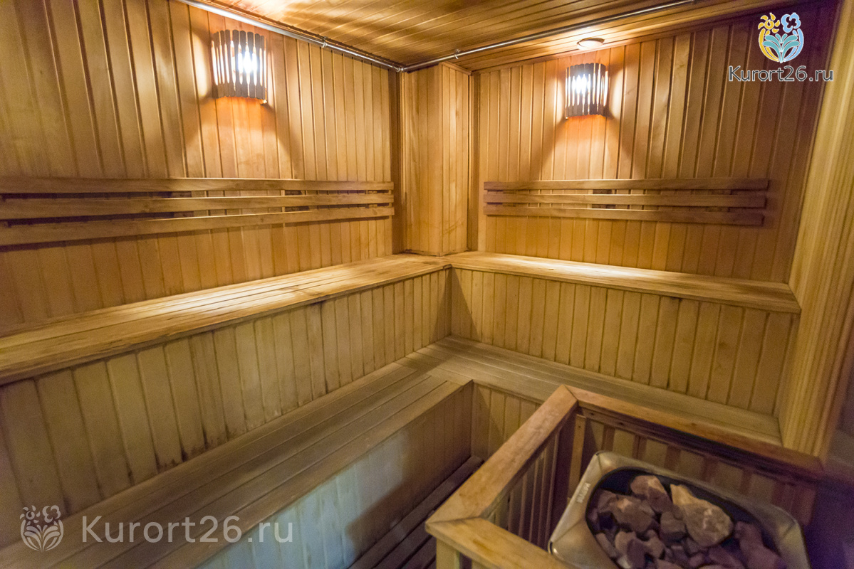 В акватермальную зону санатория также входят финская сауна с соляными камнями и турецкий хаммам.