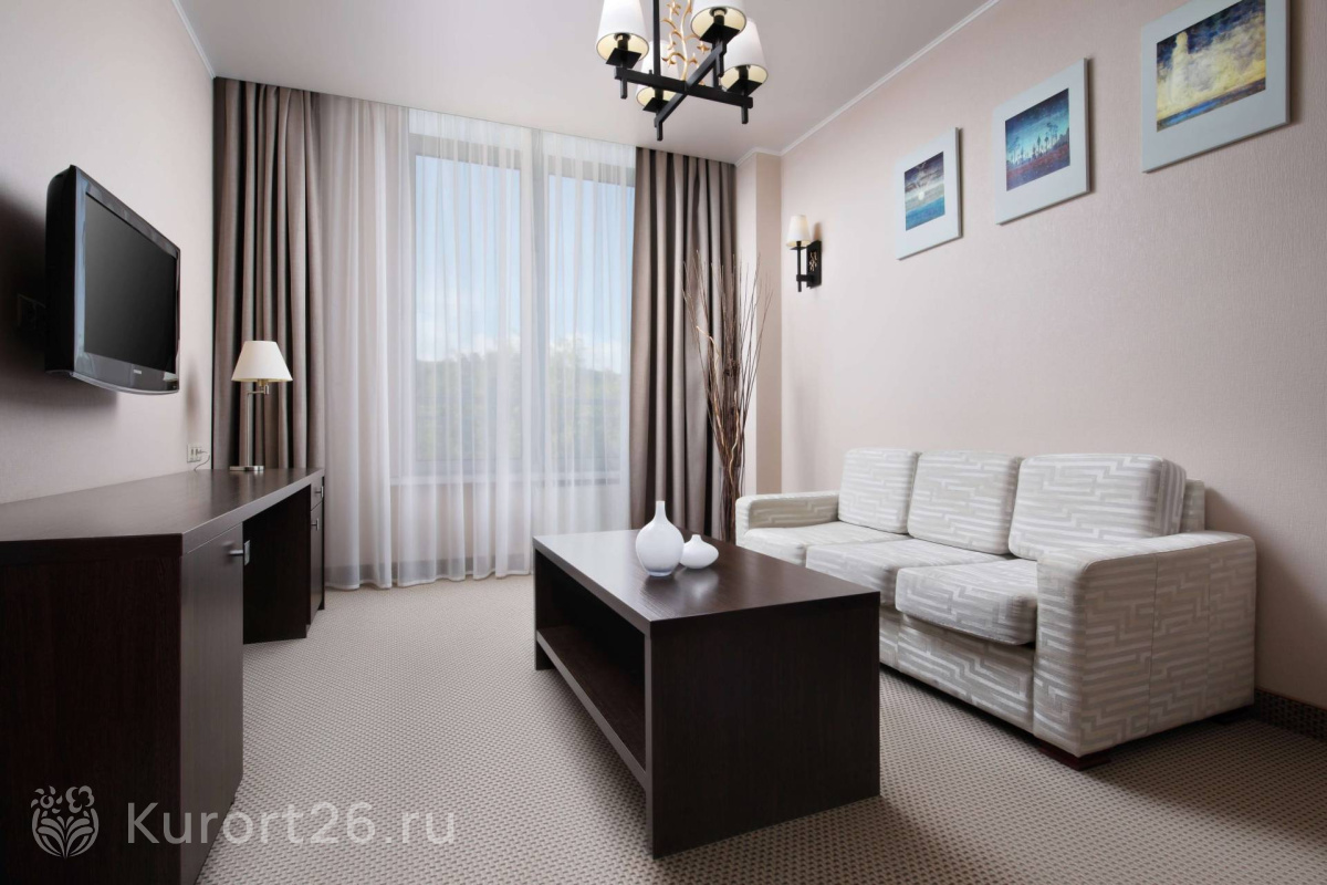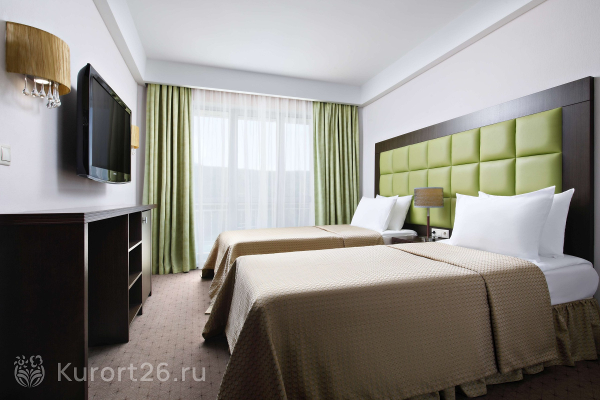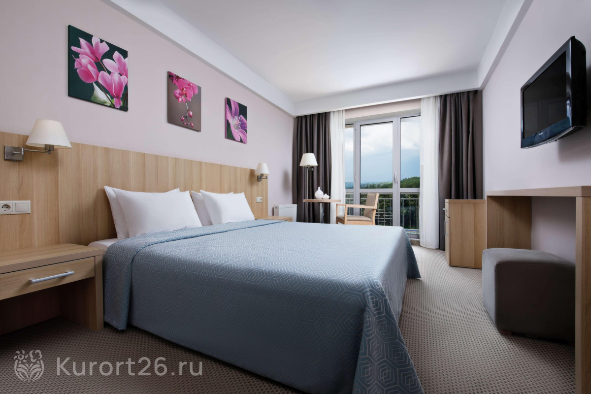 В «Плазе» комфортные современные номера с окнами в пол, из которых открывается прекрасный вид — с одной стороны здания на гору Железная, с другой — на Бештау. Почти в каждом номере есть балкон. Утром здесь приятно выпить кофе, любуясь на живописную панораму.