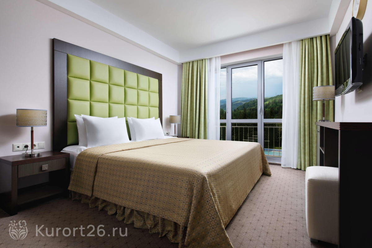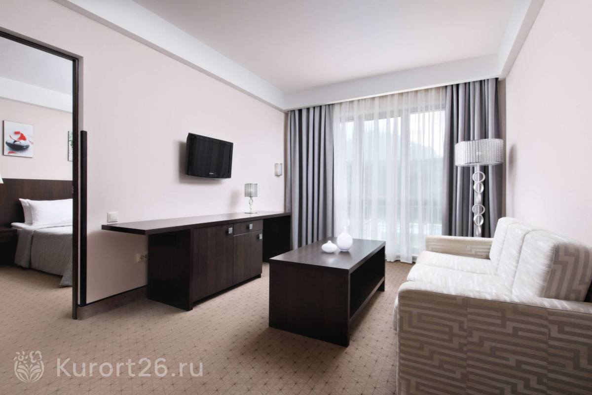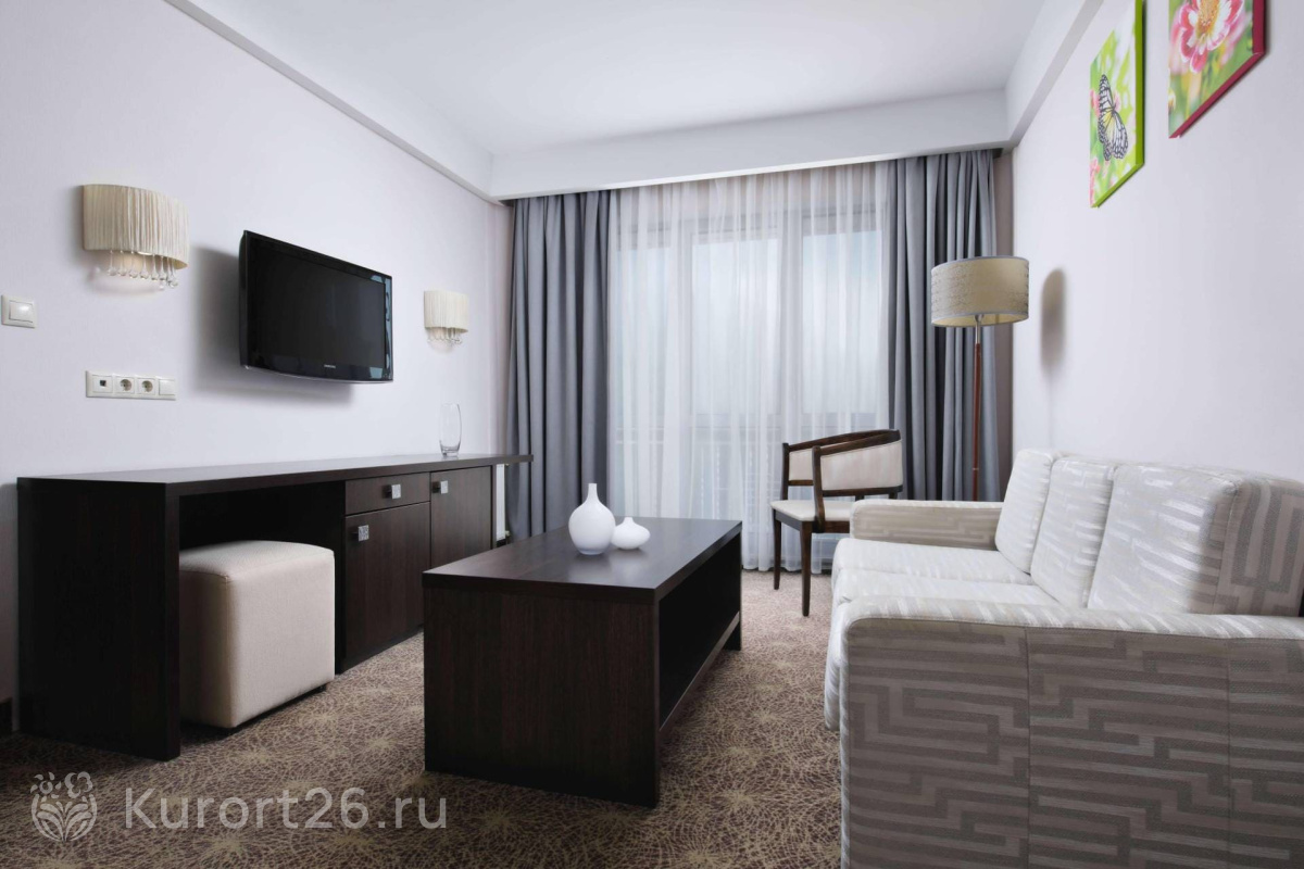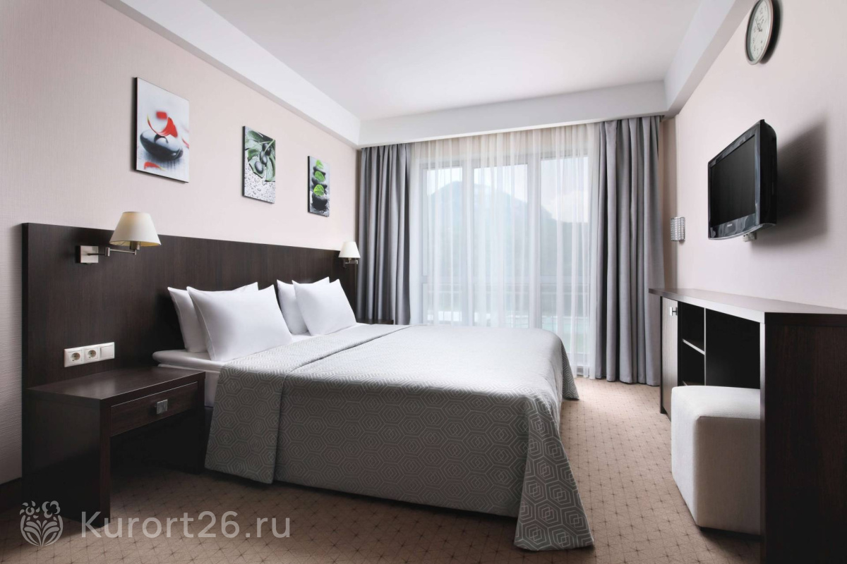 В «Плазе» комфортные современные номера с окнами в пол, из которых открывается прекрасный вид — с одной стороны здания на гору Железная, с другой — на Бештау. Почти в каждом номере есть балкон. Утром здесь приятно выпить кофе, любуясь на живописную панораму.
