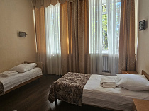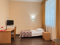 холодильник, телевизор, фен, телефон, шкаф, прикроватные тумбочки, электрочайник, сплит-система, две односпальные кровати, чайный набор, душевая кабина или ванная