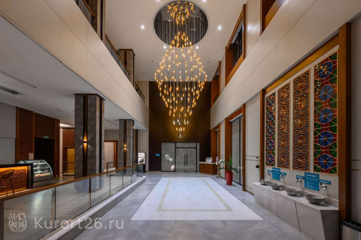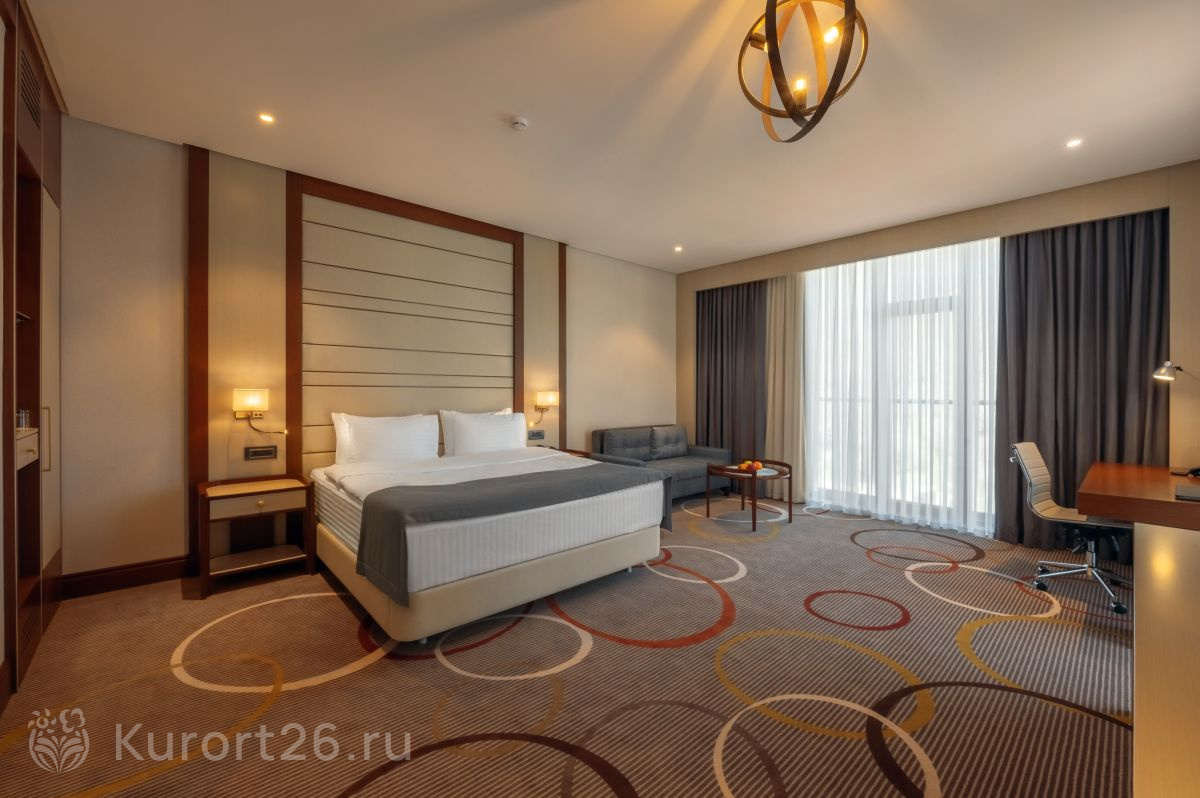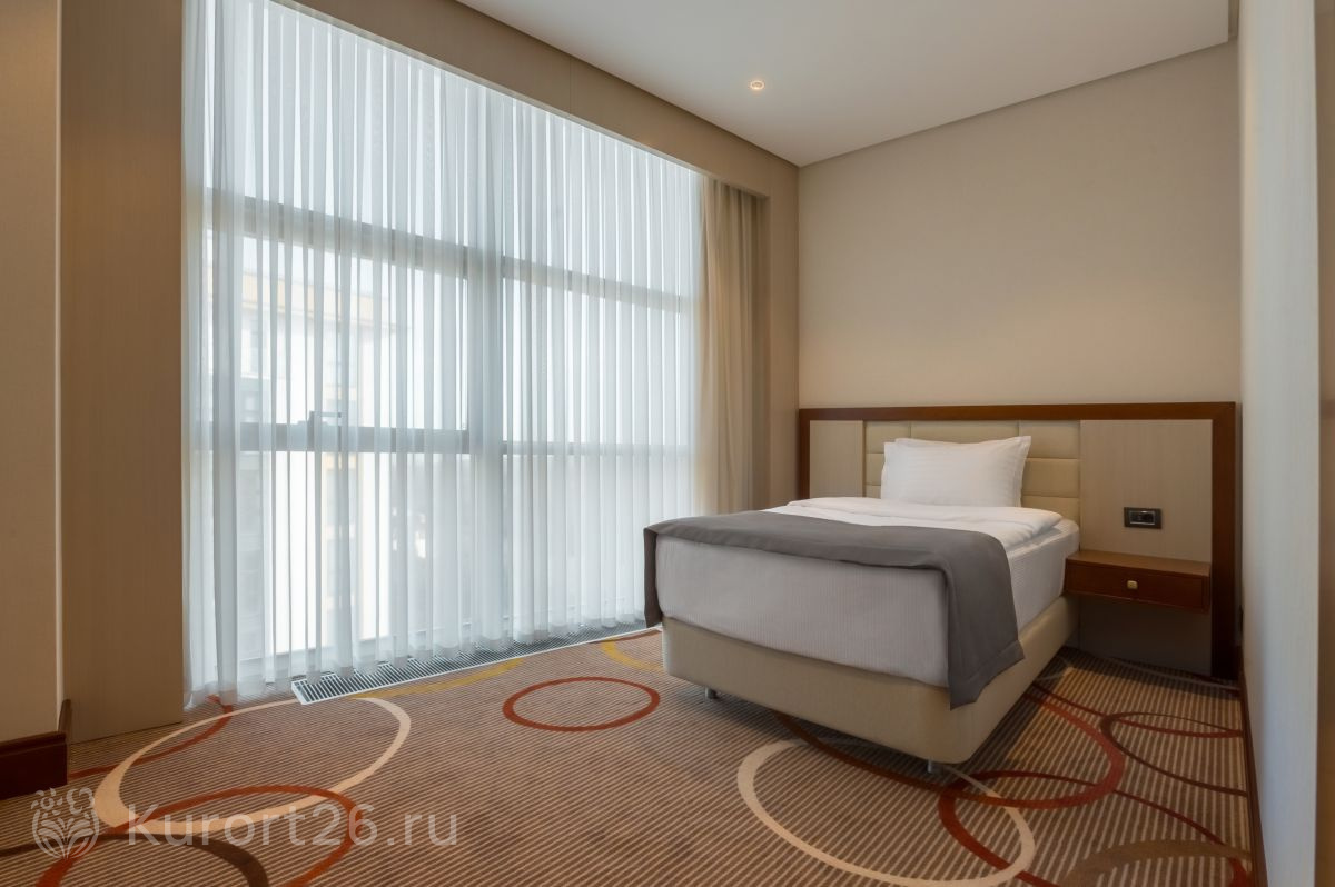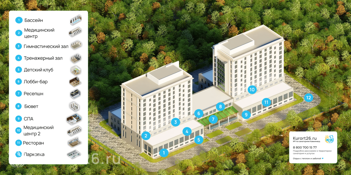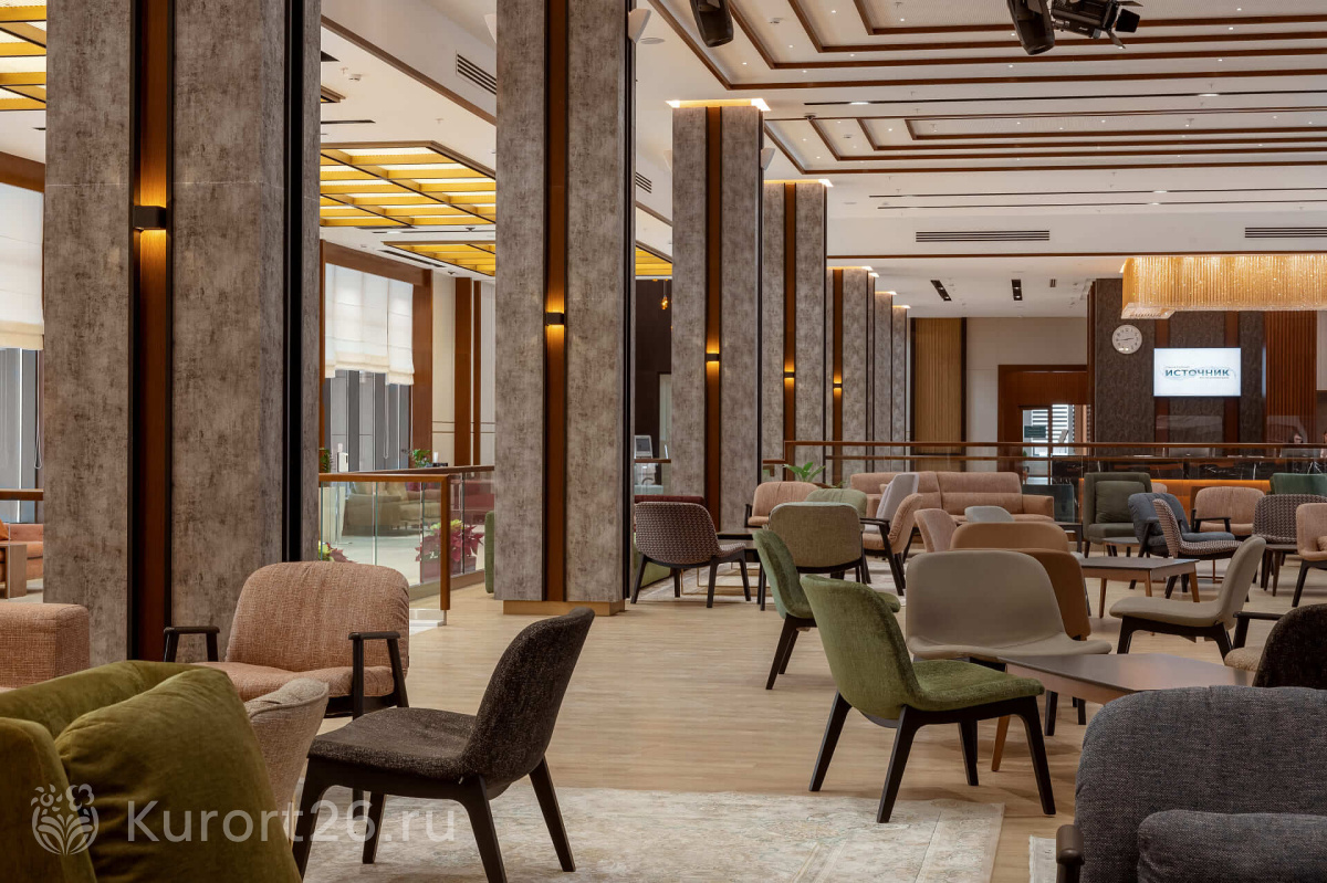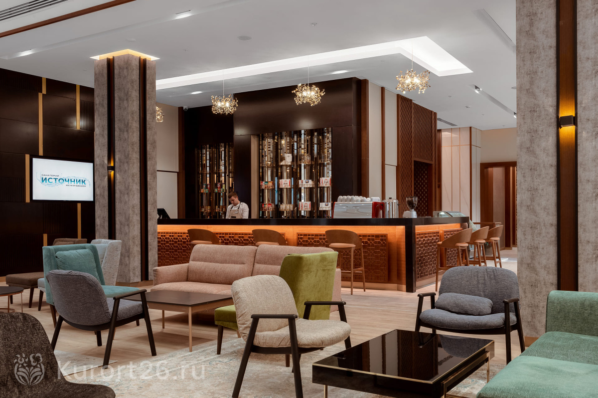 Санаторий «Источник» в Железноводске состоит из двух десятиэтажных корпусов, соединённых тёплым переходом, что обеспечивает комфортное перемещение между зданиями в любое время года. Номерной фонд включает 240 номеров повышенной комфортности: от стандартов до люксов и апартаментов.