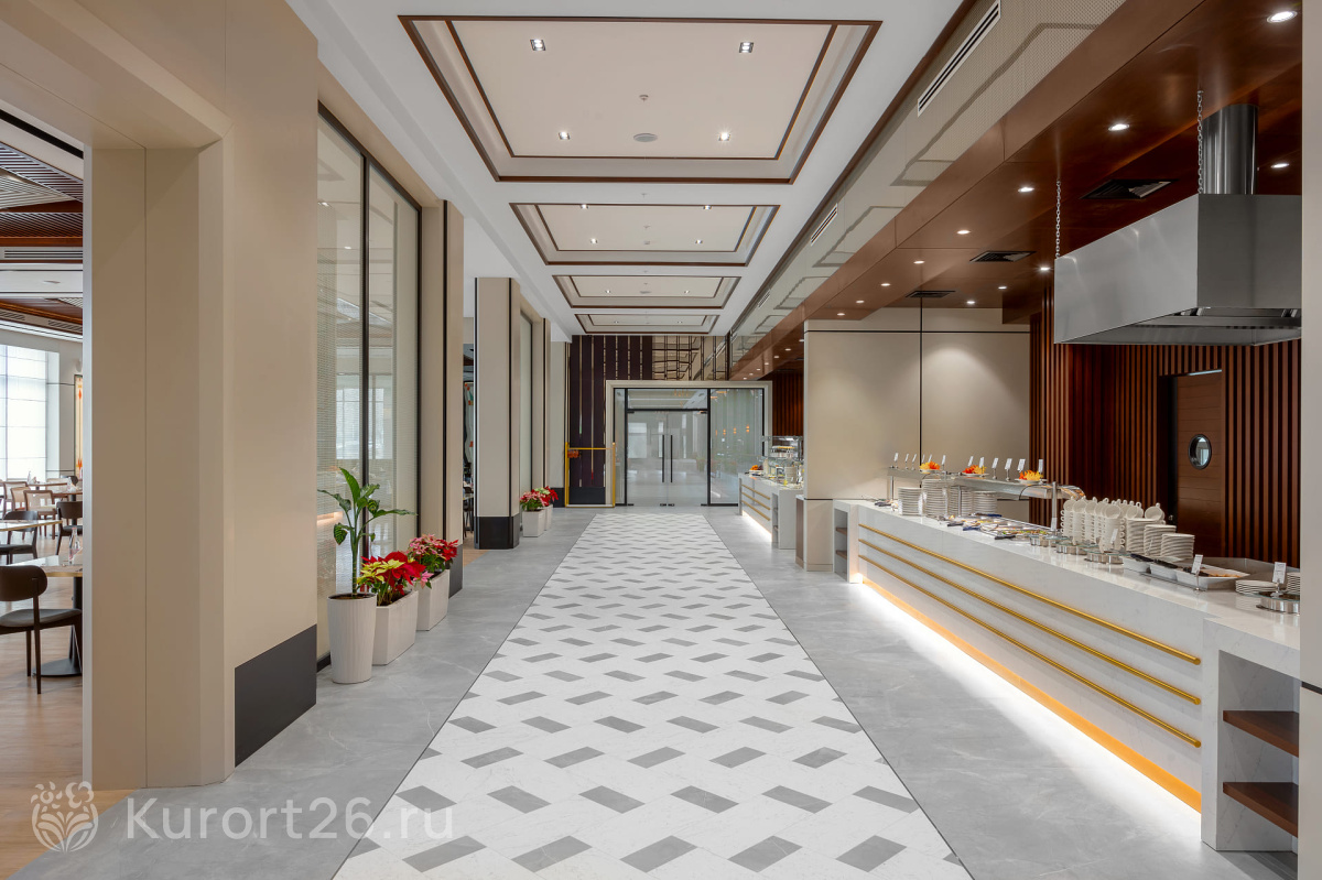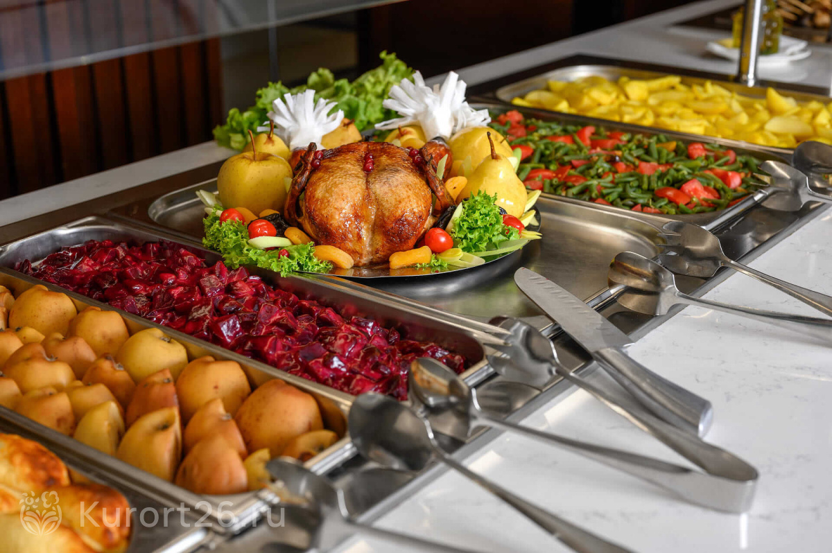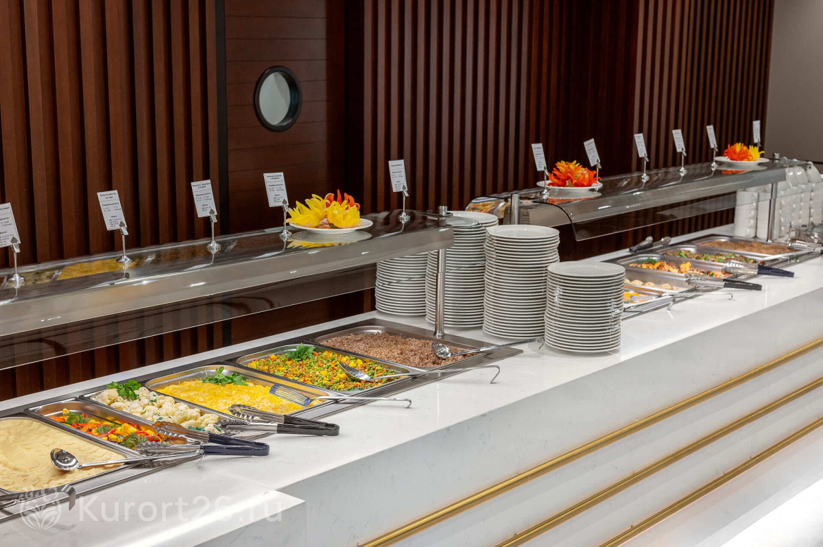 В путёвку включено трёхразовое питание «шведский стол» в ресторане. Гости очень хвалят разнообразие блюд и сервис. На территории также открыты лобби-бар «Звёздное небо» и фитобар.