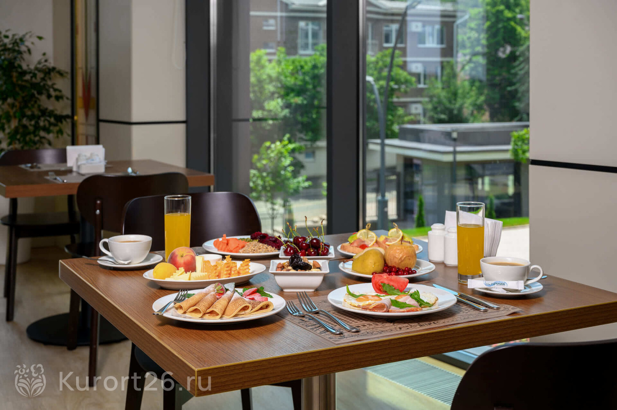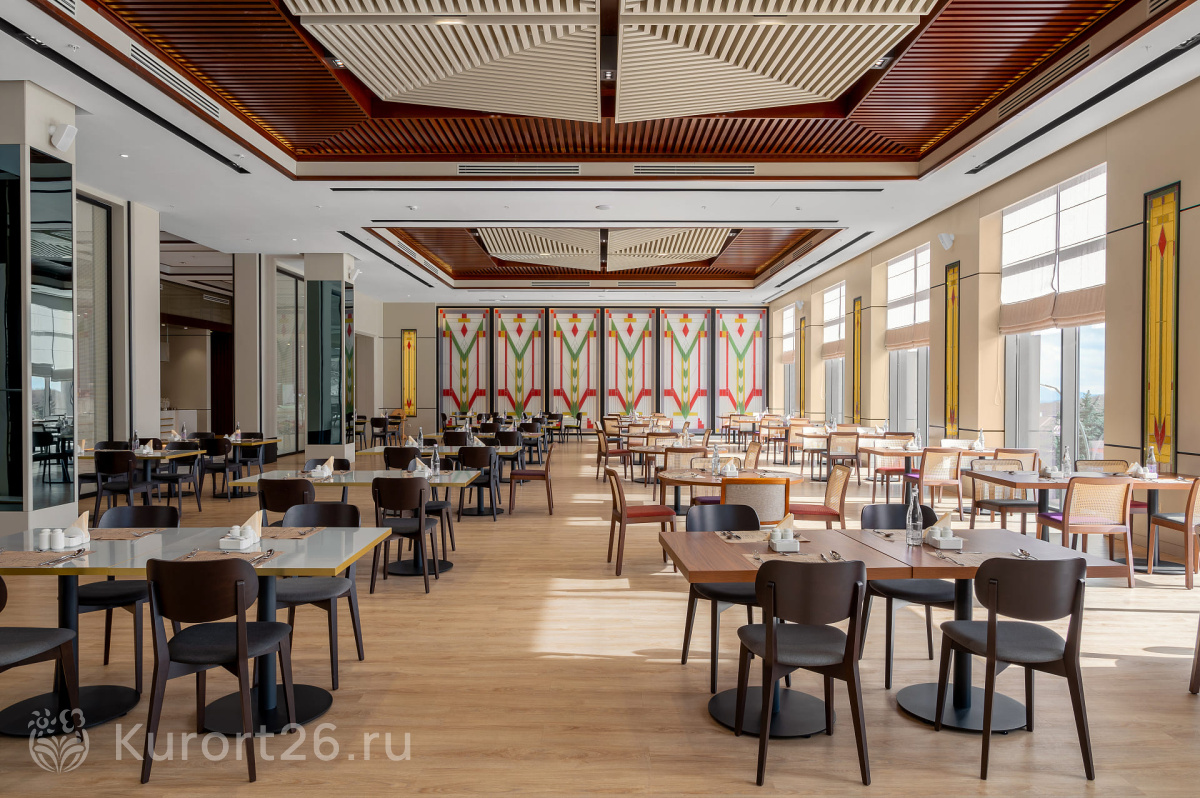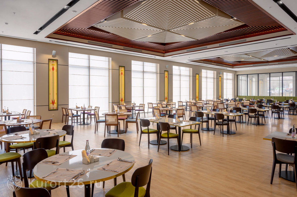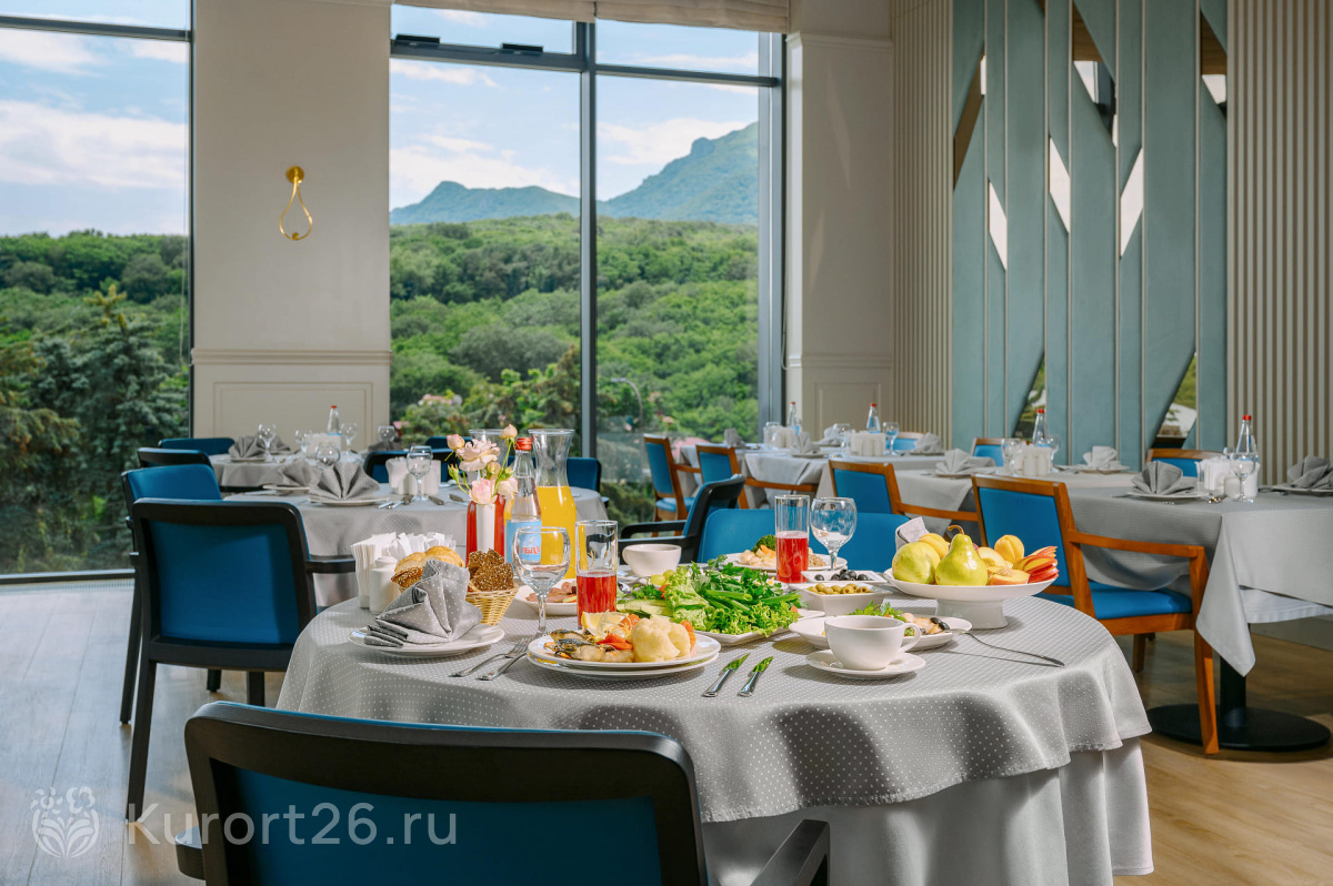 В путёвку включено трёхразовое питание «шведский стол» в ресторане. Гости очень хвалят разнообразие блюд и сервис. На территории также открыты лобби-бар «Звёздное небо» и фитобар.