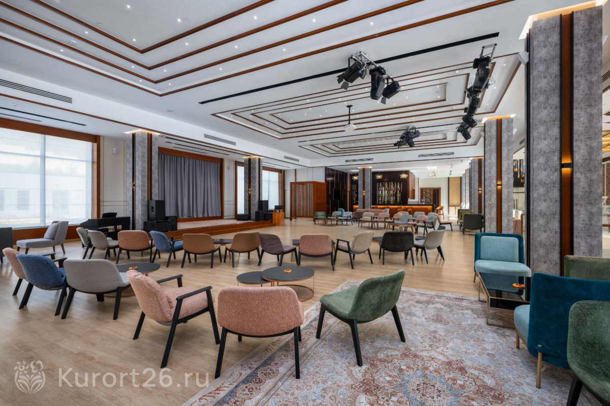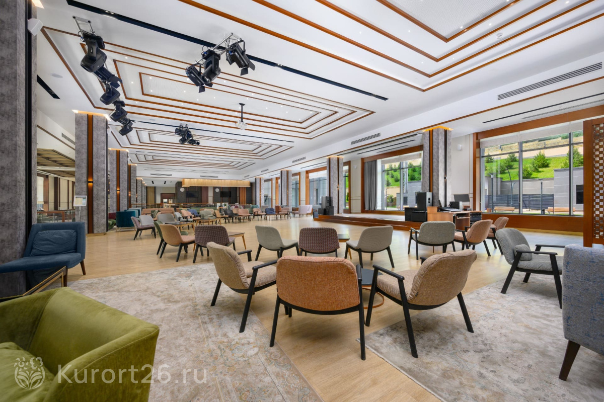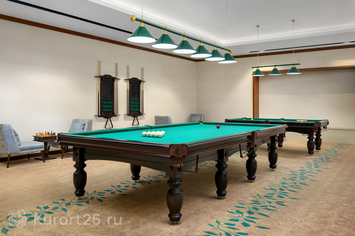 В санатории ежедневно проходят мастер-классы, настольные игры, кинопоказы, концерты, караоке-вечера. Есть фитнес-центр с тренажёрами Technogym, проводятся занятия ЛФК, пилатесом, аквааэробикой, бачатой и сальсой. Можно поиграть в бильярд.