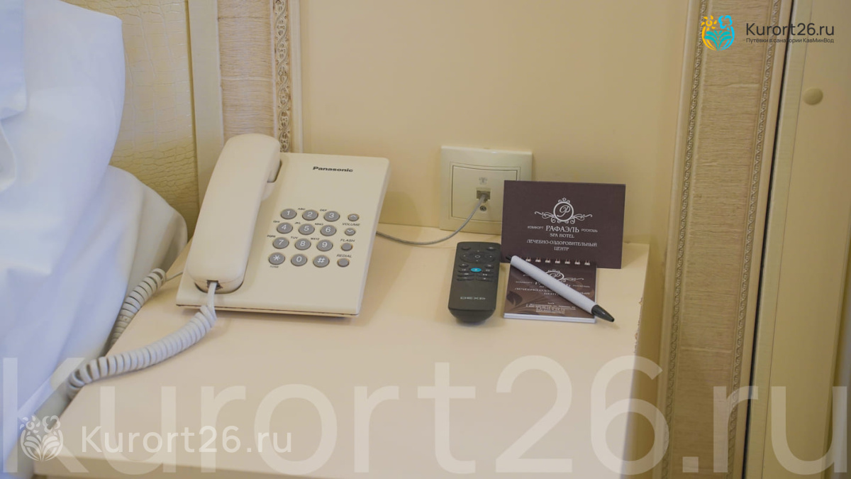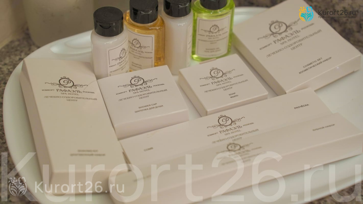 Рядом с «Рафаэлем» находятся грязелечебница и источники минеральных вод «Славяновский», «Смирновский», «Лермонтовский».Во всех номерах спа-комплекса «Рафаэль» есть телевизоры с плоским экраном, холодильники, электрочайники, посуда, сейфы, фены, телефоны. Предоставляются халаты, тапочки и ванные принадлежности. Во всех номерах есть санузлы с ваннами. В санузлах тёплые полы. Во всех номерах есть балконы. На территории спа-комплекса действует бесплатный Wi-Fi.