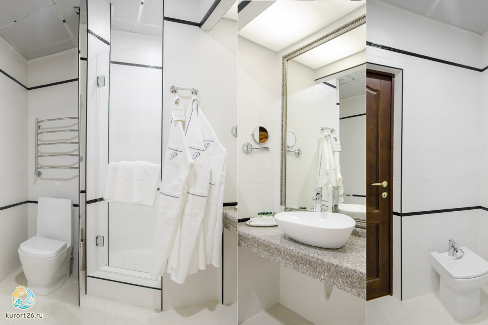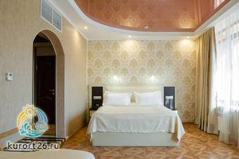 холодильник, кондиционер, телевизор, фен, набор чайной посуды, балкон, сейф, телефон, интернет в номере, ванные принадлежности, халат, тапочки, двуспальная кровать, набор мягкой мебели, электрочайник, стол, джакузи, два санузла с ванной/душем