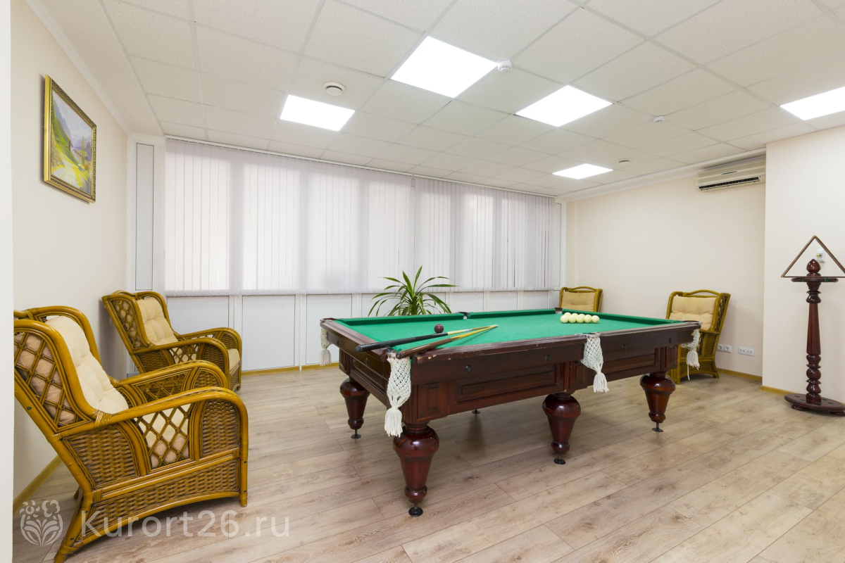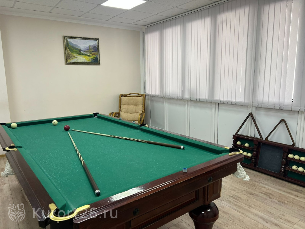 Для любителей спорта в санатории есть тренажёрный зал, зал для командных спортивных игр, бильярд и настольный теннис.