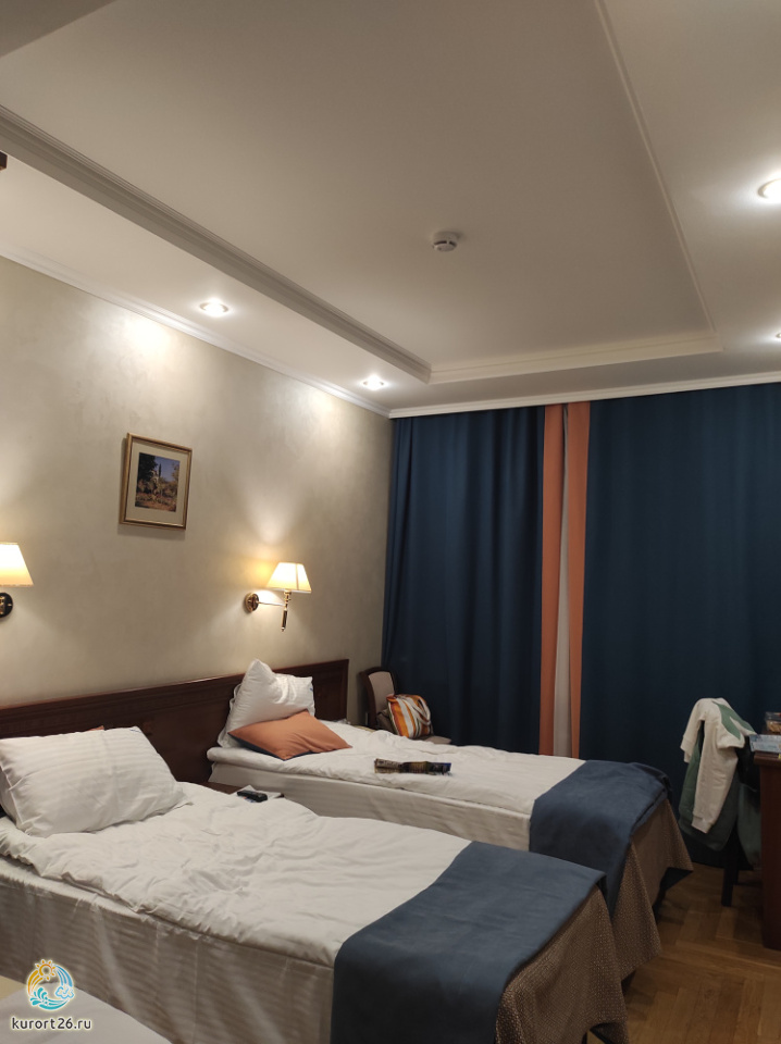 Отдыхала во 2-й раз, спустя 20 лет... ) Хочется сразу сказать, что санаторий замечательный во многих аспектах и спустя 20 лет, стал еще лучше! Во 1) Отличное питание: из свежайших продуктов, приготовленных по-домашнему. Во-2) Внимательные, приветливые, доброжелательные официанты, особенно Ирина, обслуживающая 1-й ряд вдоль окон. В-3) такое же отношение к отдыхающим у администраторов, особенно Екатерины в 1-ом корпусе и Самсоновой Татьяны Владимировны во 2-ом корпусе, за что им также наша искренняя благодарность! В-4) Конечно же, самое главное в любом санатории - это лечение, поэтому хочется отметить весьма достойную лечебную базу этого санатория и профессионализм работающих в нем специалистов - Борисову Н.А., а также медсестер - Кеворкян Лидию Сергеевну и Шинкарец Валерию Владимировну. (в кабинете электролечения). В-5) Понравилась и культурная программа - концерты, кинофильмы и особенно живая музыка в рекреации перед столовой во время ужина. В-6) Прекрасная материальная база - особенно порадовало наличие махровых полотенец на всех водных процедурах, что обеспечивает отдыхающим особый комфорт. В-7) Также понравилась территория санатория - большая, красиво обустроенная и что особенно порадовало, очень ухоженная. В-8) Наличие своего собственного автобуса также чрезвычайно удобно для отдыхающих. НО! Пожелание, чтобы автобус ходил по воскресеньям чаще, включая 1-ую половину дня, поскольку из-за отсутствия процедур отдыхающие после завтрака в большинстве отправляются в город, на рынок и т.д. Замечания: 1. Не работал бассейн из-за ремонта, но об этом не было предупреждения со стороны работников отдела бронирования санатория и туроператоров. И получилось, что люди тратили время на оформление справок для бассейна, брали и везли с собой купальники, шапочки, халаты, обувь и всё зря! 2. В номерах 3-го корпуса нет фенов, о чем также, к сожалению, почему-то людей не предупреждают. О Курорт26.ру: ДаПонравилось: Во-1) Отличное питание. Во-2) Внимательные, приветливые, доброжелательные официанты. В-3) такое же отношение к отдыхающим у администраторов. В-4) Конечно же, самое главное в любом санатории - это лечение, поэтому хочется отметить весьма достойную лечебную базу этого санатория и профессионализм работающих в нем специалистов. В-5) Понравилась и культурная программа. В-6) Прекрасная материальная база. В-7) Также понравилась территория санатория - большая, красиво обустроенная и что особенно порадовало, очень ухоженная. В-8) Наличие своего собственного автобуса также чрезвычайно удобно для отдыхающих.Можно лучше: НО! Пожелание, чтобы автобус ходил по воскресеньям чаще, включая 1-ую половину дня, поскольку из-за отсутствия процедур отдыхающие после завтрака в большинстве отправляются в город, на рынок и т.д. Замечания: 1. Не работал бассейн из-за ремонта, но об этом не было предупреждения со стороны работников отдела бронирования санатория и туроператоров. И получилось, что люди тратили время на оформление справок для бассейна, брали и везли с собой купальники, шапочки, халаты, обувь и всё зря! 2. В номерах 3-го корпуса нет фенов, о чем также, к сожалению, почему-то людей не предупреждают.