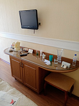 Отдыхали в санатории «Шахтёр» в Ессентуках с 06 по 18 мая 2021г. Очень помог Курорт26, в том, что отдых вообще состоялся, бронировали последний номер и до этого другая тур. компания, так и не смогла нам помочь. И только благодаря профессионализму Валерии, всё сложилось. Не скрою, что с опаской перечисляли деньги (слишком много в интернете аферистов) и ждали возврат кэшбэка. Но всё получилось. Перед отъездом, Курорт26, прислал нам информацию по экскурсиям, карту Ессентуков, и прочую полезную информацию. Очень порадовал бесплатный трансфер из аэропорта и скидка 20% на экскурсии. Валерия постоянно была с нами на связи. В следующий раз, поедим только с вами. Понравилось: Теперь о «Шахтёре»: номера отличные, с новым ремонтом, интересным дизайном, шикарным сан.узлом. У нас был Бизнес номер в Центральном корпусе, но и Стандарты почти ничем не отличаются, может чуть поменьше. Питание тоже очень разнообразное, качественное и вкусное. Бассейн в свободном доступе, с утра аквааэробика. Лечебная база на высоком уровне, процедуры назначают в полном объеме, не жалеют. Работают в субботу и воскресенье, так что ничего не пропускаешь. Даже в день отъезда, мы успели сделать несколько процедур, спокойно позавтракали и в 11 часов приехало такси. Местоположение санатория неплохое, до питьевого бювета метров 500, до парка чуть дальше. До парка Победы ещё ближе, метров 300. Можно лучше: Совсем не понравился досуг. Вернее его отсутствие. Настольные игры для взрослых, иногда кино, какие-то психологические тренинги. Хотелось бы танцы, выступление музыкальных коллективов. Есть библиотека, она работает по принципу: книги стоят - можете брать. Книги очень старые, издания 70-годов, в плоть до собраний Ленина, современных авторов нет вообще. Там же стоят 2 бильярдных стола, но шары нужно брать в другом корпусе и нести их самим, а они совсем не легкие. И вот пока с этим хозяйством пройдёшь по улице, откроешь все двери, разложишь, а потом соберешь, а часики между прочим тикают и твоё оплаченное время уже идёт. В общем второй раз такого удовольствия уже не хочется. На следующий день после нашего приезда, в санатории начался глобальный ремонт территории - не повезло, особенно после дождичка. Ходили мы по грязи и пыли, так как лечебный корпус, спальные корпуса и столовая не соединяются переходами. Но в принципе - это все мелочи, и на общее приятное впечатление об отдыхе, они совсем не повлияли.