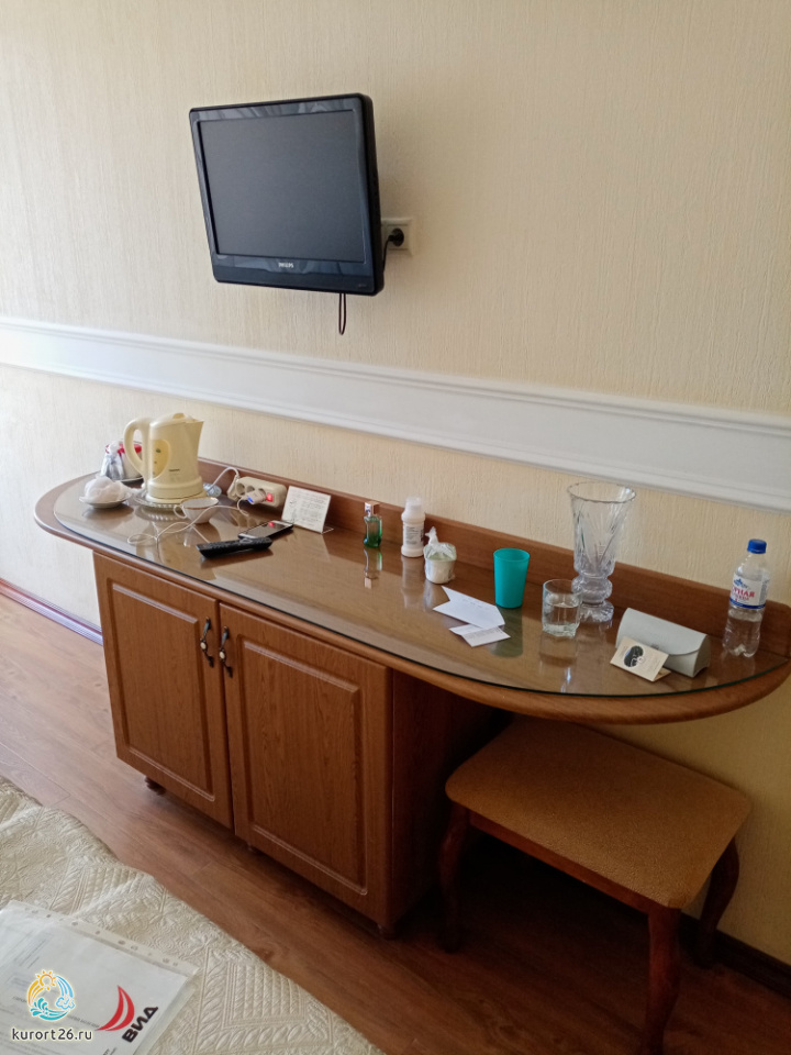 Лечилась и отдыхала по социальной путевке с 12 мая по 29 мая 2021 года. Санаторий находится около трассы, но мне это совершенно не мешало, тем более, что недалеко есть большой парк и можно гулять там. В первую неделю почти у всех поднялось давление и процедур почти не назначали, то ли местоположение санатория, то ли изменение погоды. Заезд был не маленький, но нас не встретили, хотя автобус есть! Подселили меня к бабушке( 83 года! ) не понятно как вообще дали ей путёвку без сопровождающего, но зачем подселять к такому пожилому человеку? Можно было пойти устроить скандал, но я решила не портить себе начало отдыха. Но через 3 дня она уезжала и номер надо было отмывать и ждать следующего человека. В общем, отделу маркетинга большой минус! Санаторий не заполнен и есть номера, но это наш сервис. Номер понравился стандартный, не убитый. Вид из окна на гору Машук - великолепно! Убирали каждый день, белье меняли часто. Спасибо большое! Питание хорошее. И фруктики и овощи, и салатики, каши. Все понравилось. Спасибо официанту Екатерине - молодец! Понравилось лечение - работает команда профессионалов. Огромное спасибо! Профиль санатория - офтальмология и все на высшем уровне. Молодцы! Лечащий доктор Белоброва В.А., спасибо огромное. Вода Красноармейская - привозная, по времени. Кулеры с водой на всех этажах. Вечером танцы, фильмы, мероприятия. В городе театр оперетты - замечательно! В общем, хотелось бы ещё приехать в этот санаторий. Понравилось: Понравилось лечение, отношение докторов и медсестёр - все доброжелательные и улыбчивые! Спасибо Вам.Можно лучше: Не встретили на ж/д вокзале, хоть автобус есть и заезд был 12 мая не маленький. Подселили к очень пожилому человеку, который уезжал через 3 дня. Зачем так делать? Огромный минус отделу маркетинга - Марине. Я просила ее дать другой номер.